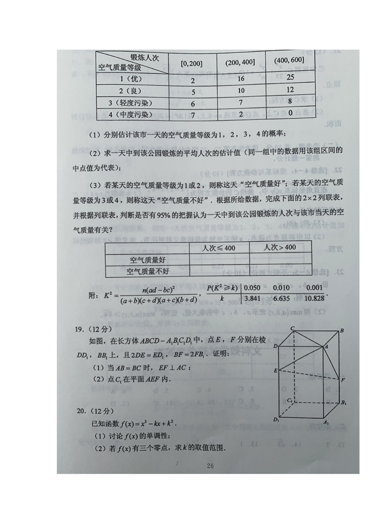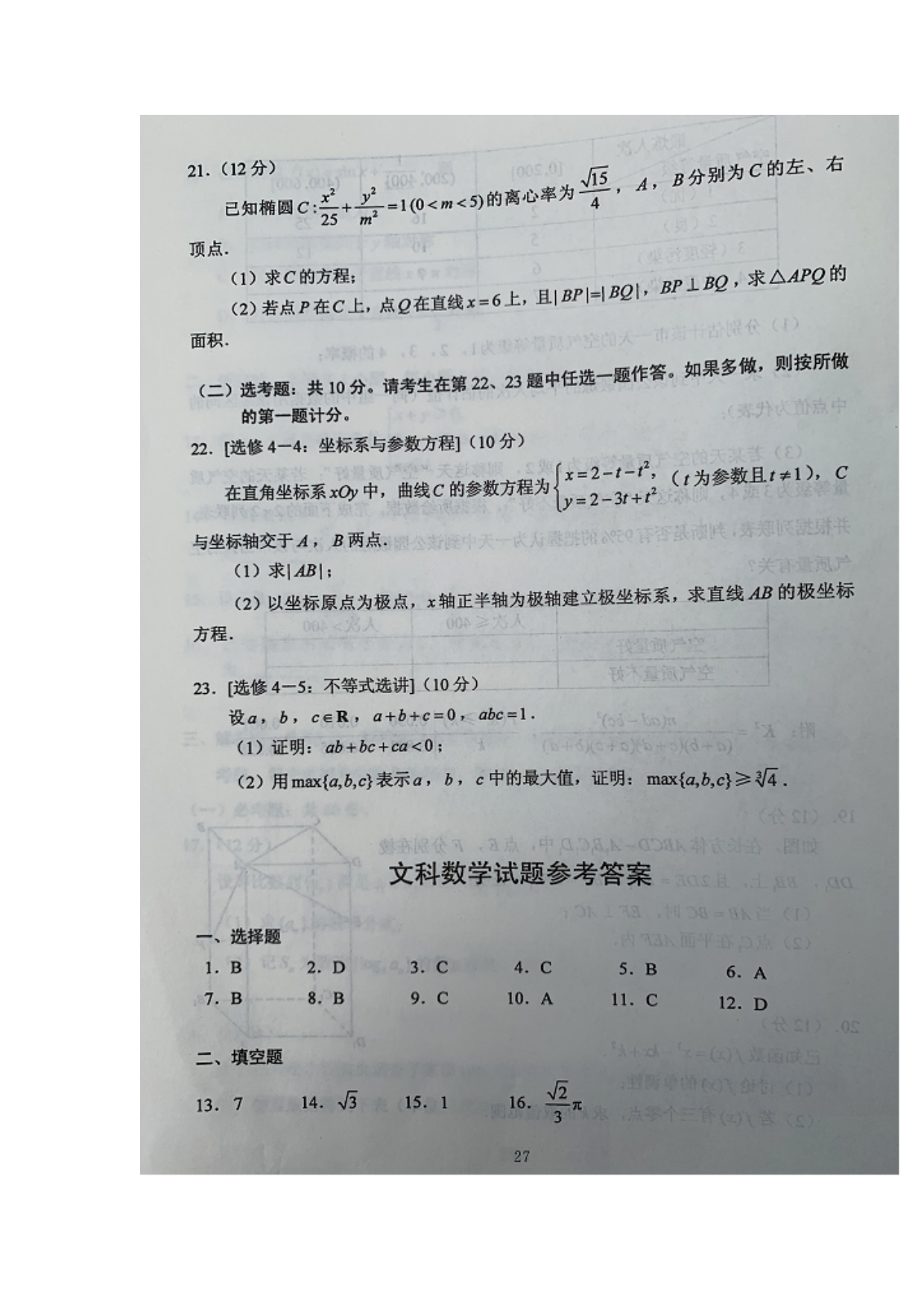 【文档名称】 2020年云南高考文科数学试题真题及答案(图片版).doc