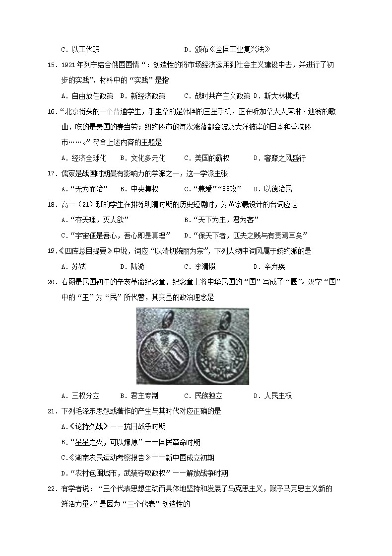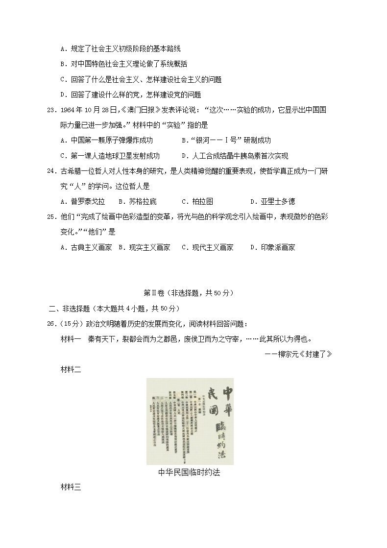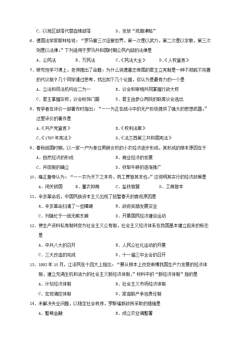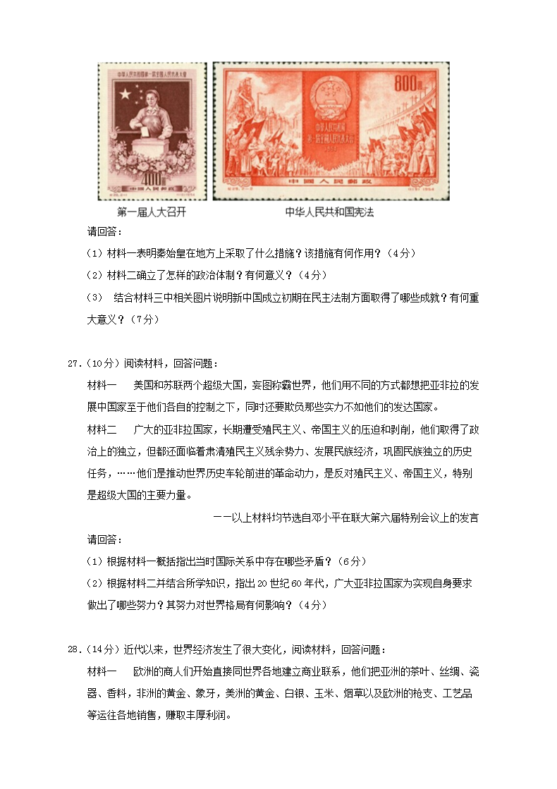 【文档名称】 2016年新疆维吾尔自治区普通高中会考历史真题及答案(Word版).doc