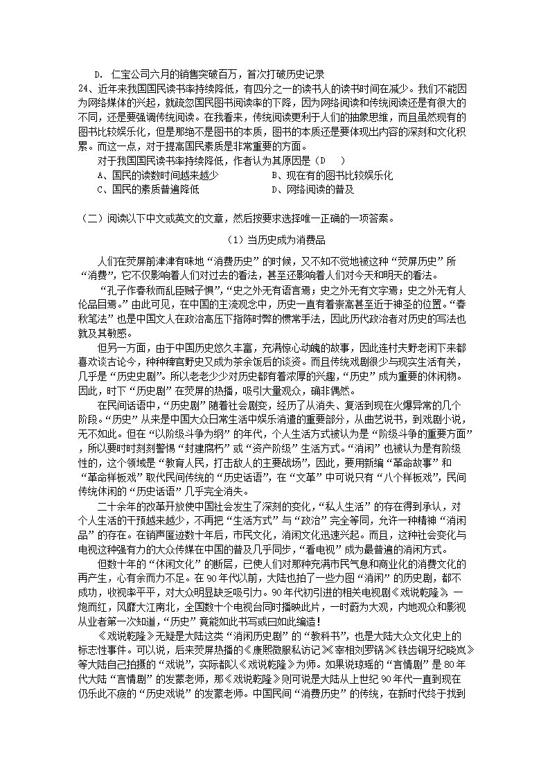 【文档预览】 无忧考网整理发布2010年江苏移动招聘笔试完整试卷及答案(Word版),前五页预览如下: