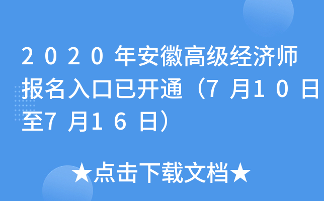 【#经济师考试# #2020年安徽高级经济师报名入口已开通(7月10日至7月16日)#】2020年安徽高级经济师报名时间:2020年7月10日9:00至7月16日17:00,报名入口已开通,想要报考2020年高级经济师考试的考生,快来报名吧!