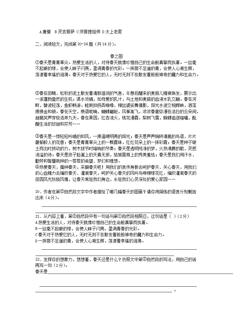 【文档预览】 无忧考网整理发布2018年北京朝阳区小升初语文真题及答案(Word版),前五页预览如下: