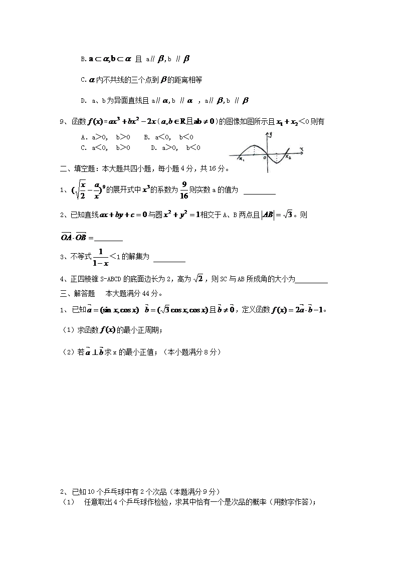 【文档预览】 无忧考网整理发布2011年河南郑州中原区高中数学教师招聘考试真题A卷(Word版),前五页预览如下: