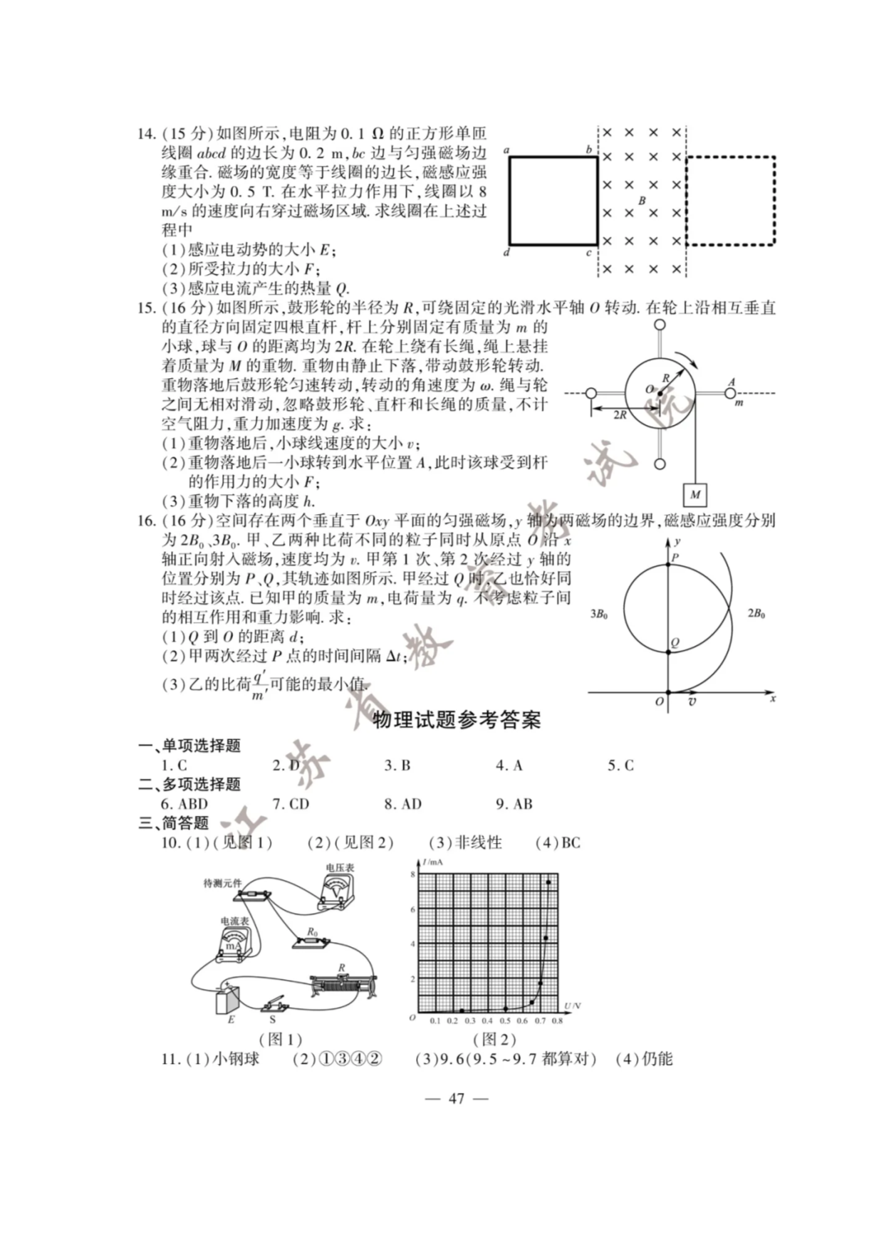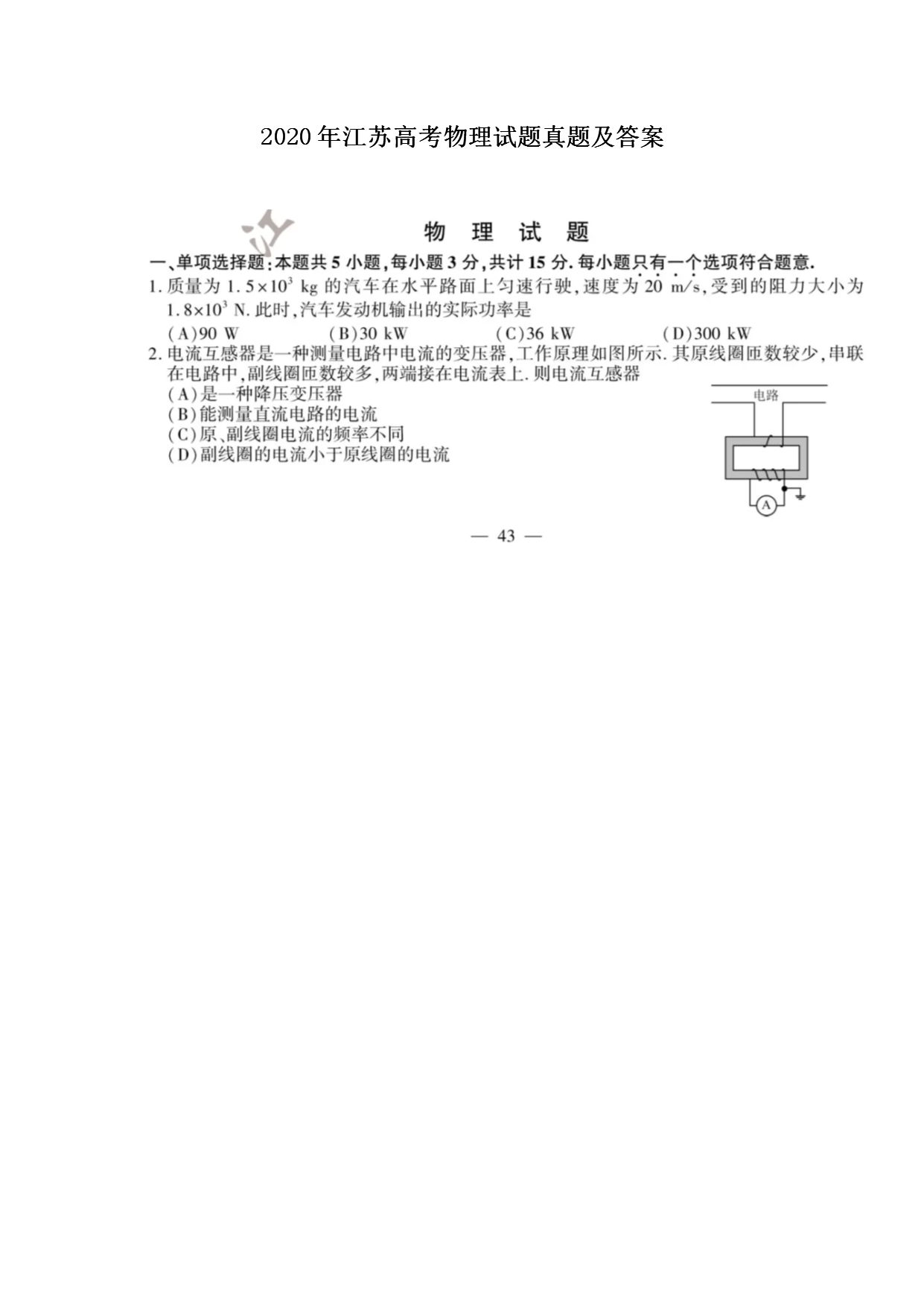 【文档预览】 无忧考网整理发布2020年江苏高考物理试题真题及答案(图片版),前五页预览如下: