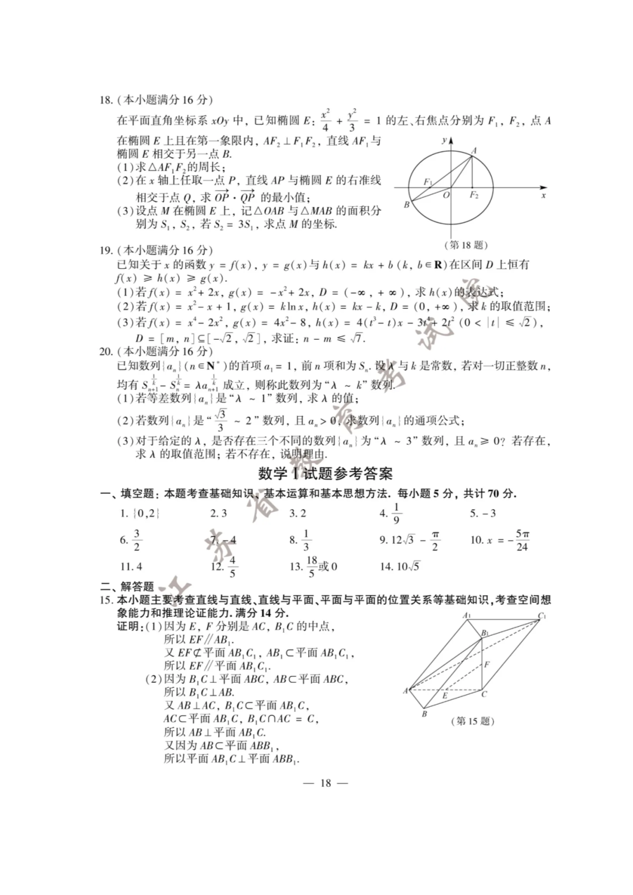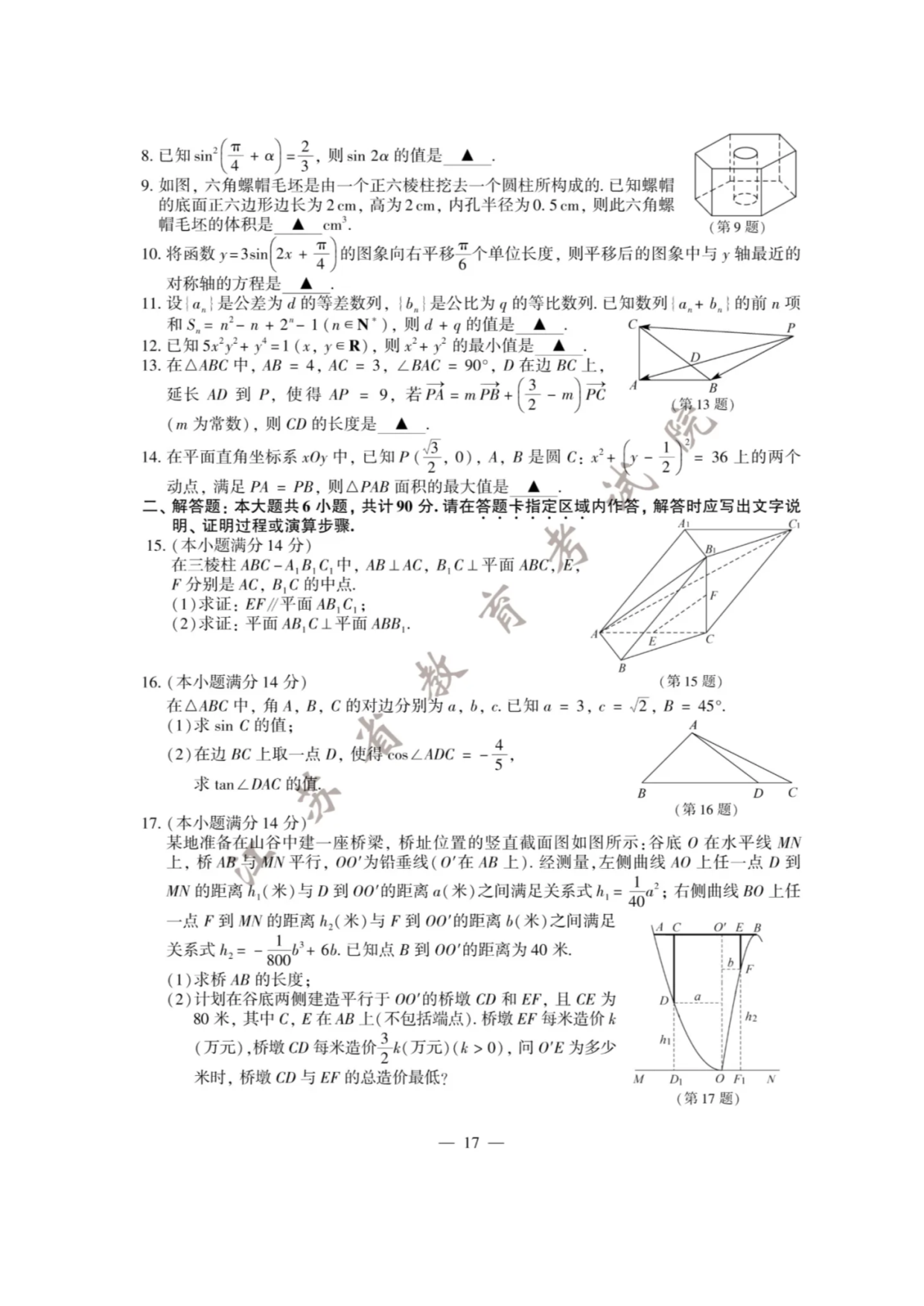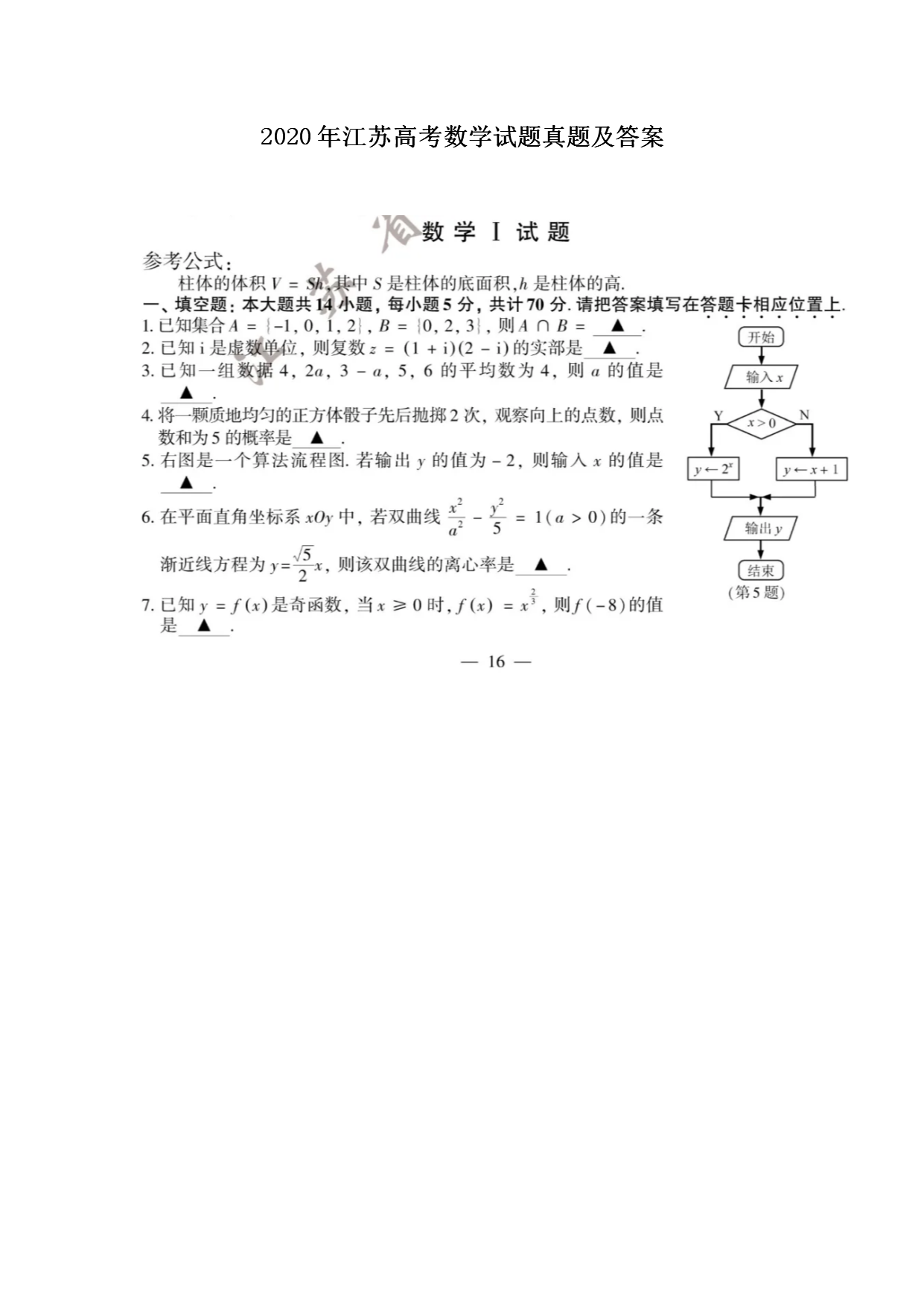 【文档名称】 2020年江苏高考数学试题真题及答案(图片版).doc