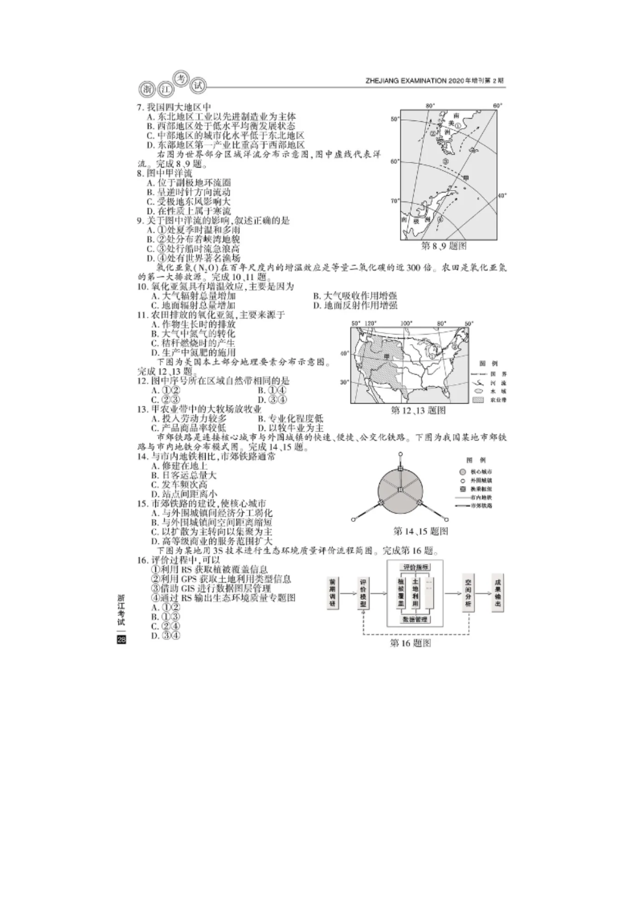 【文档名称】 2020年7月浙江普通高中学业水平考试地理真题及答案(图片版).doc