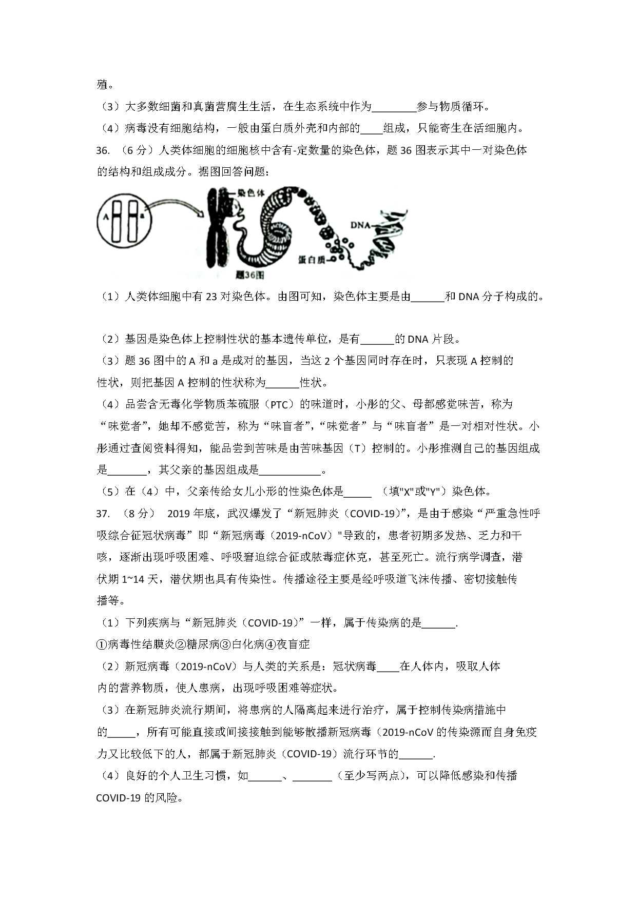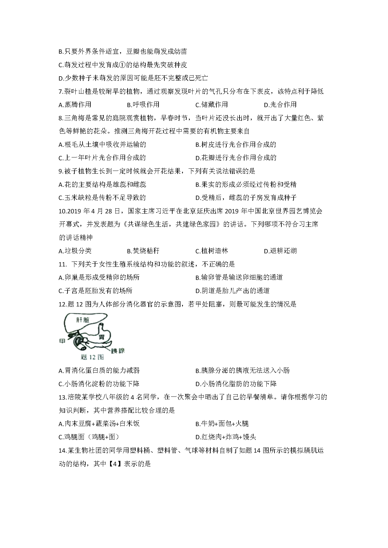 【文档名称】 2020年重庆市涪陵区初中结业考试生物试题及答案(Word版).doc
