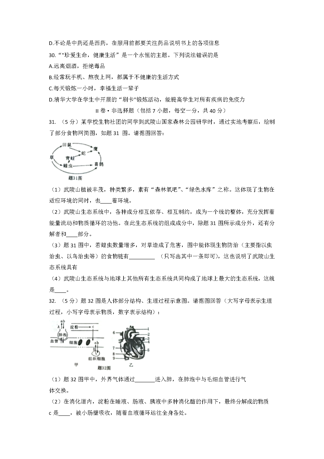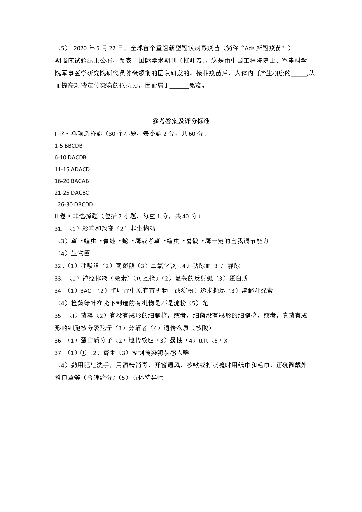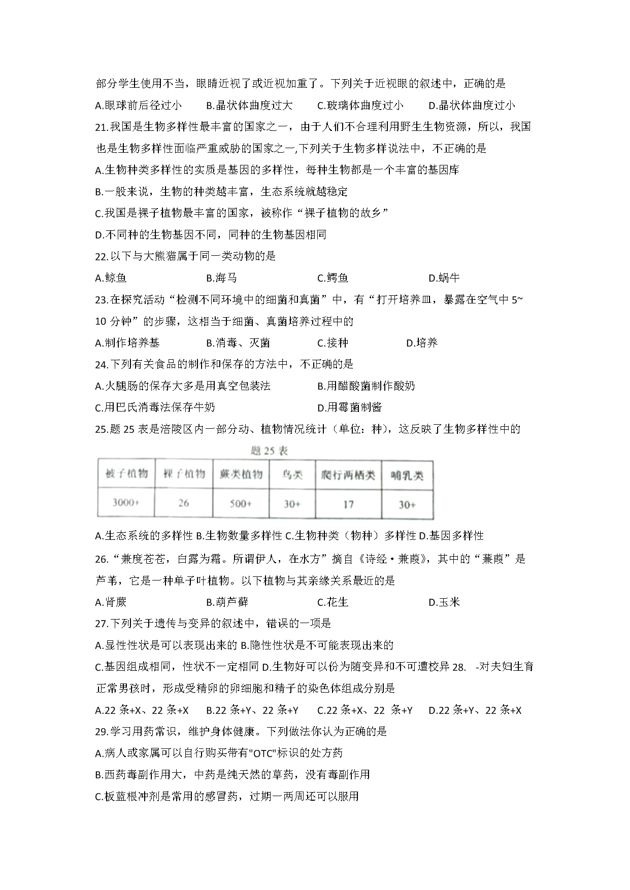 【文档预览】 无忧考网整理发布2020年重庆市涪陵区初中结业考试生物试题及答案(Word版),前五页预览如下: