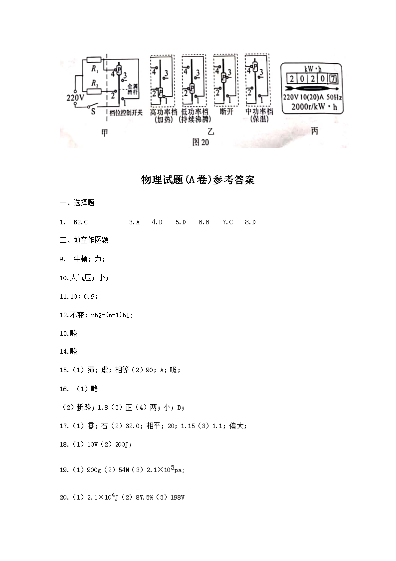 【文档名称】 2020年重庆市北碚中考物理试题及答案(A卷)(Word版).doc