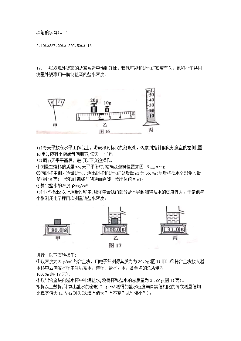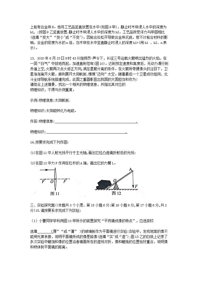 【文档名称】 2020年重庆市渝中中考物理试题及答案(A卷)(Word版).doc