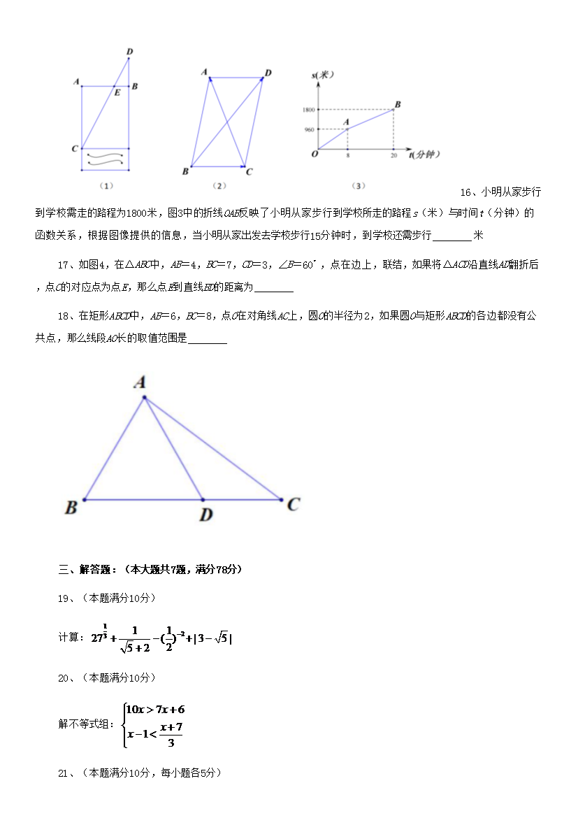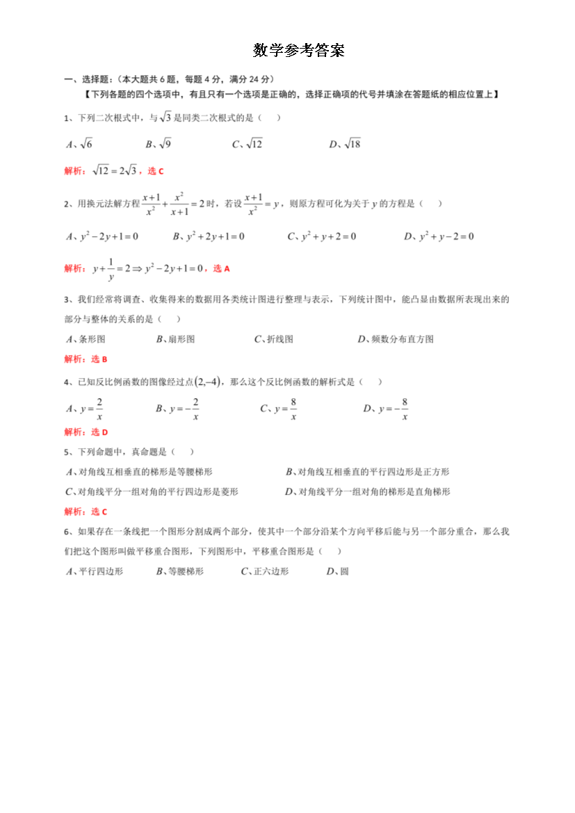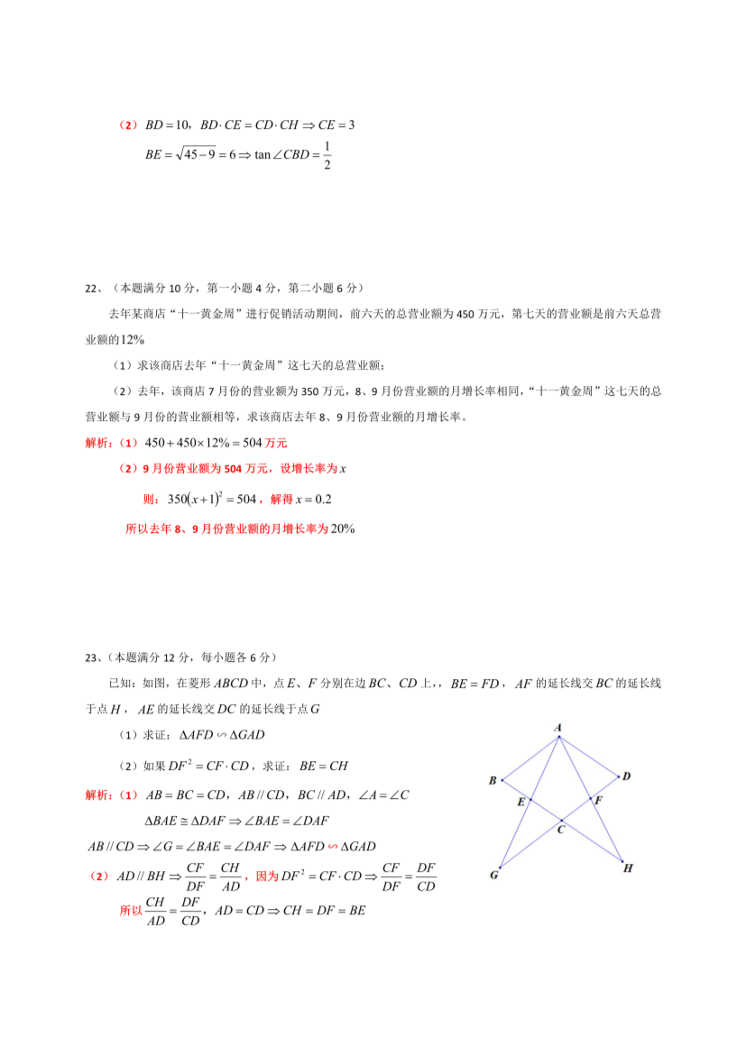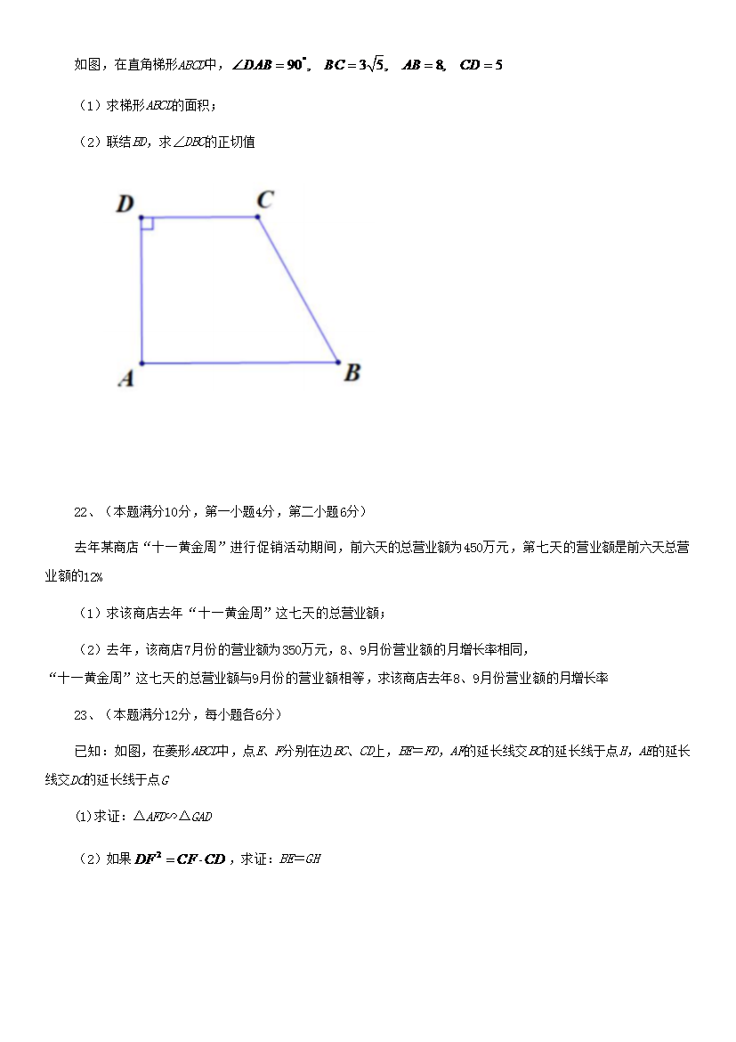 【文档名称】 2020年上海中考数学试题及答案(Word版).doc