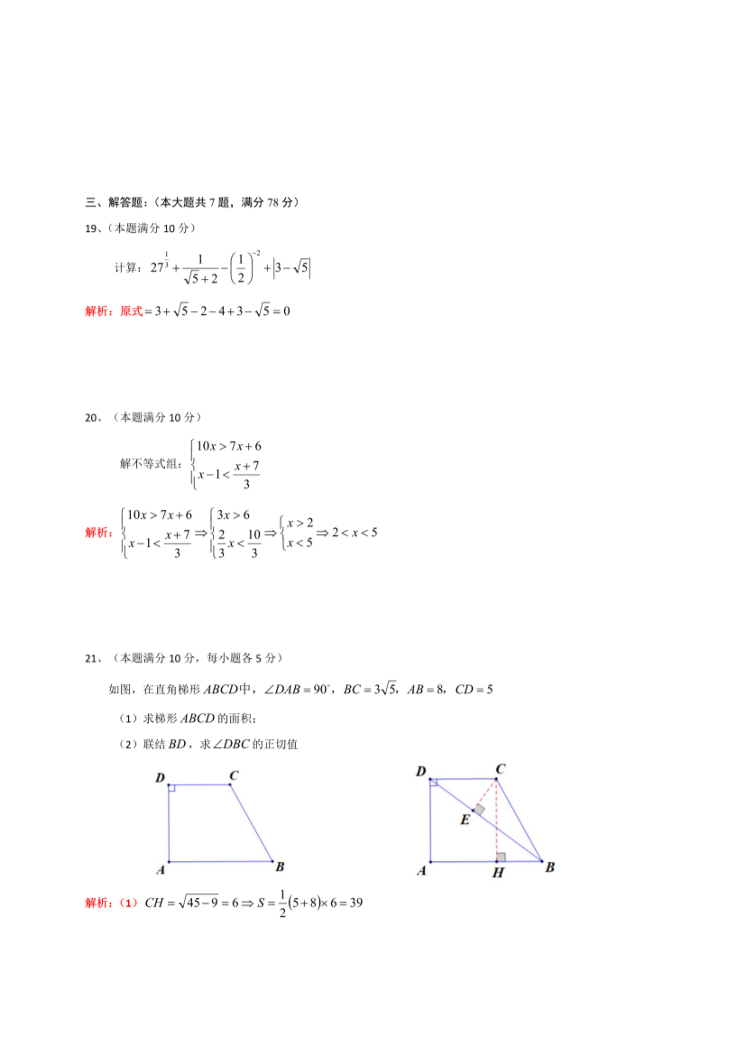 【文档预览】 无忧考网整理发布2020年上海中考数学试题及答案(Word版),前五页预览如下: