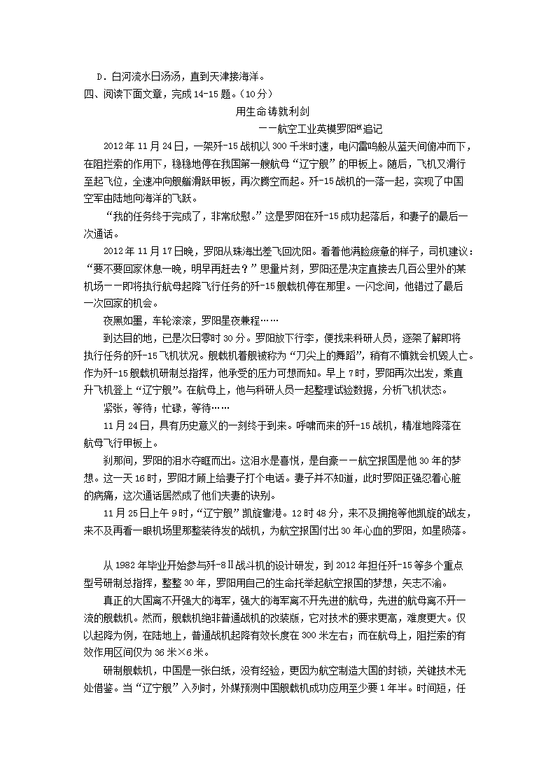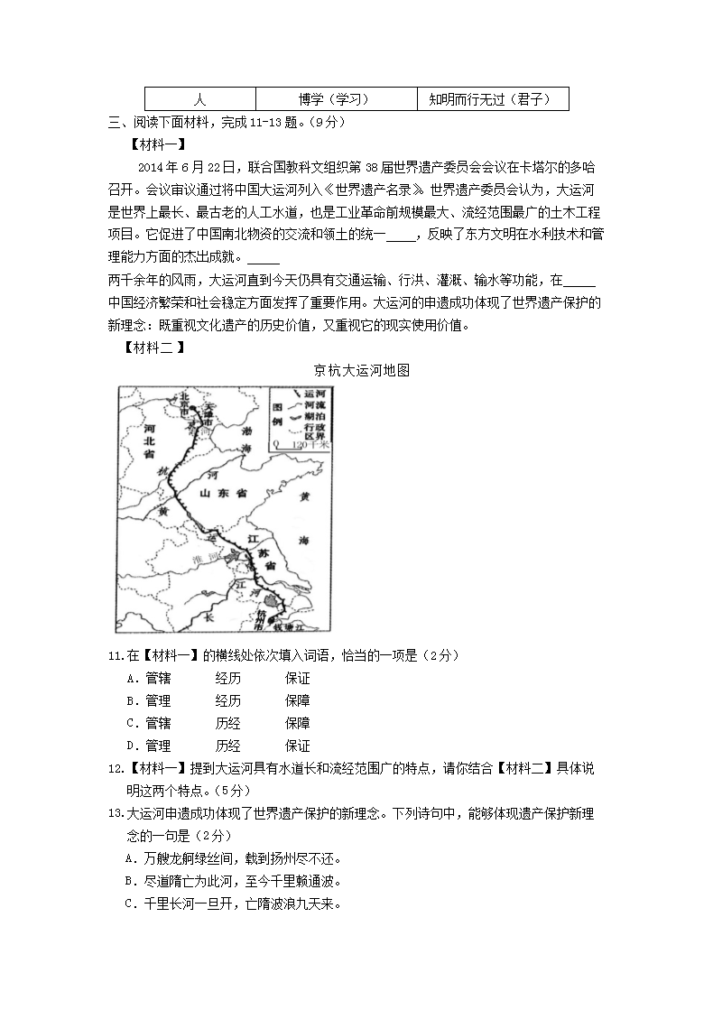 【文档名称】 2015年北京普通高中会考语文真题及答案(Word版).doc