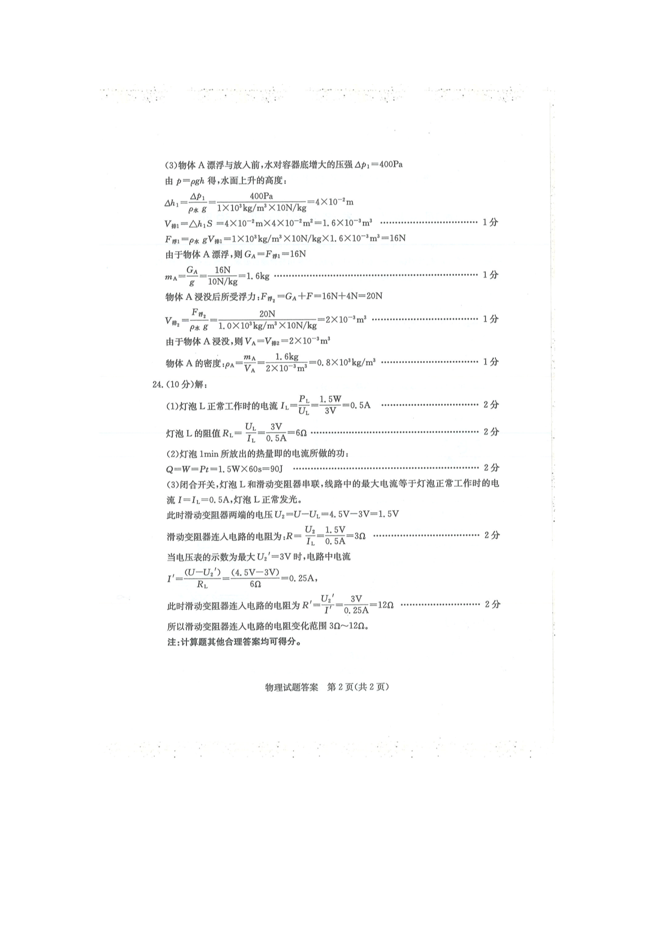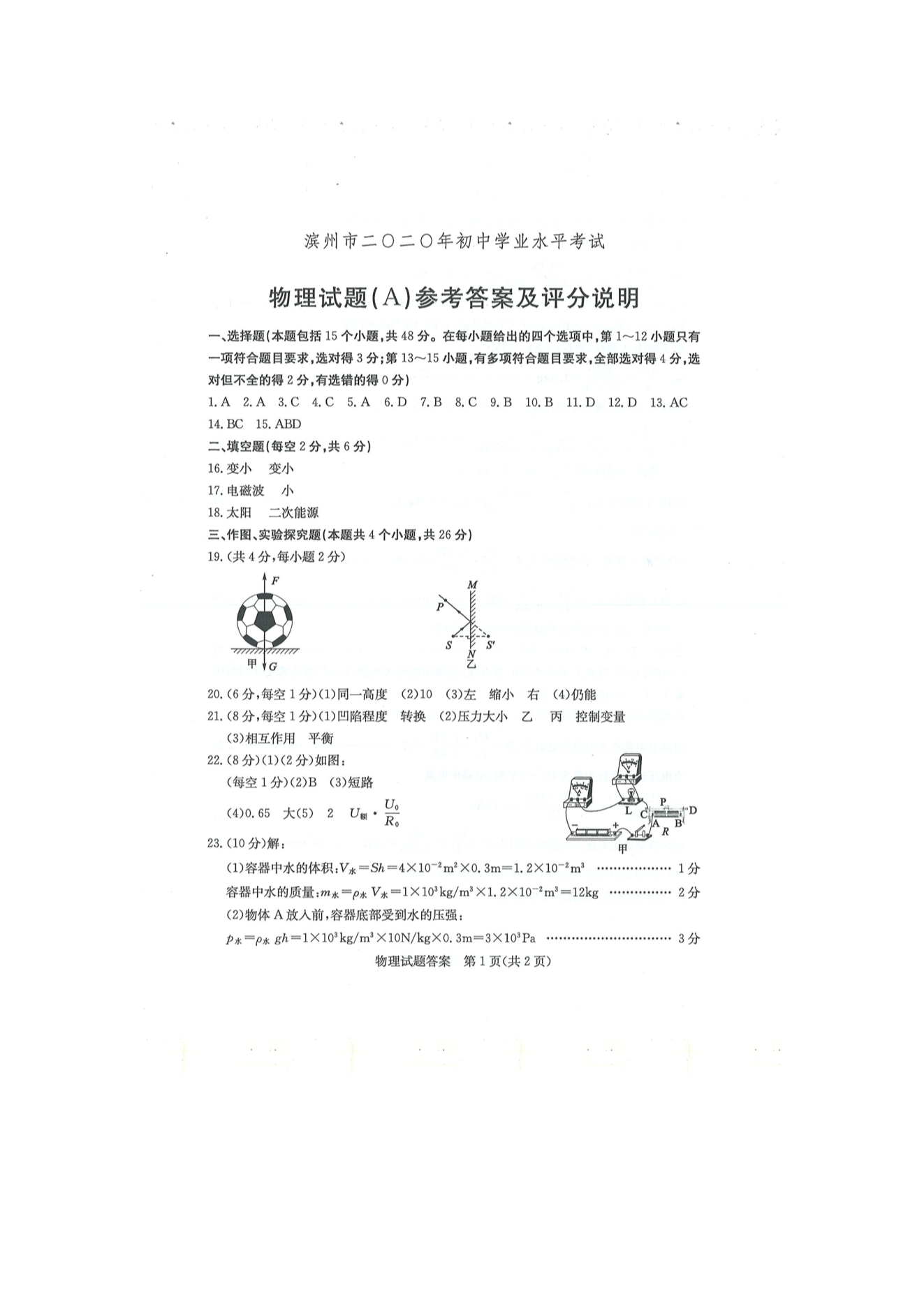 【文档名称】 2020年山东滨州中考物理真题及答案(图片版).doc