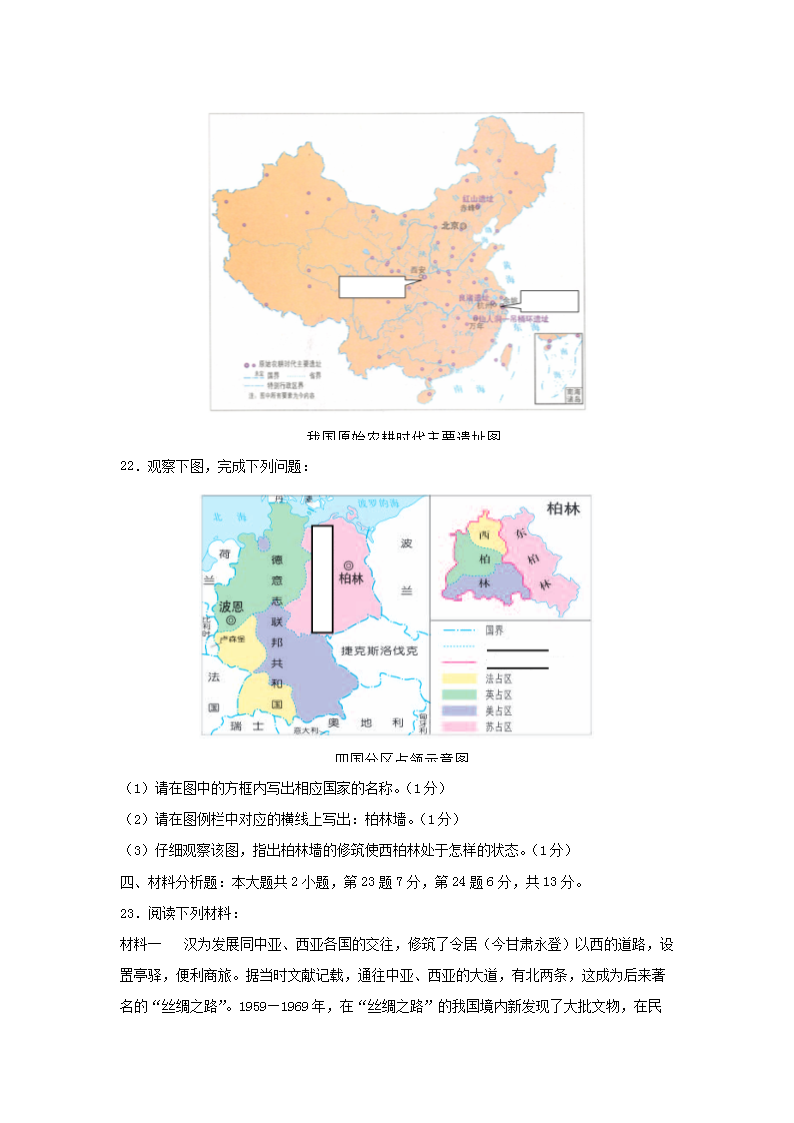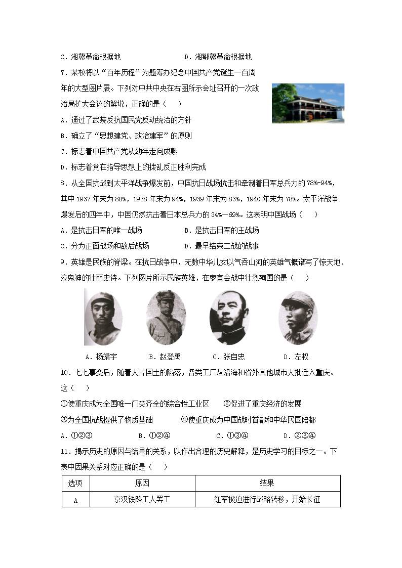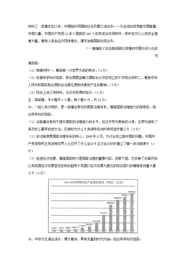 【文档名称】 2020年重庆市渝中中考历史试题及答案(B卷)(Word版).doc