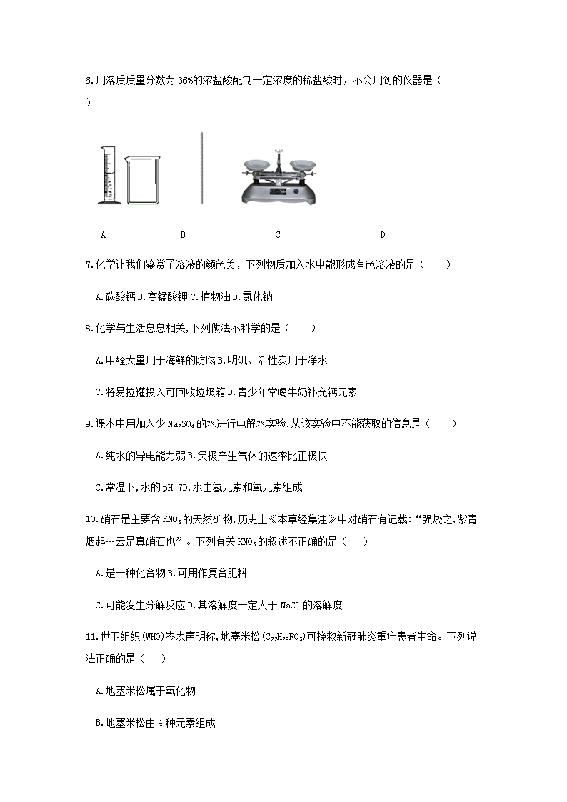 【文档名称】 2020年重庆市南川中考化学试题及答案(A卷)(Word版).doc