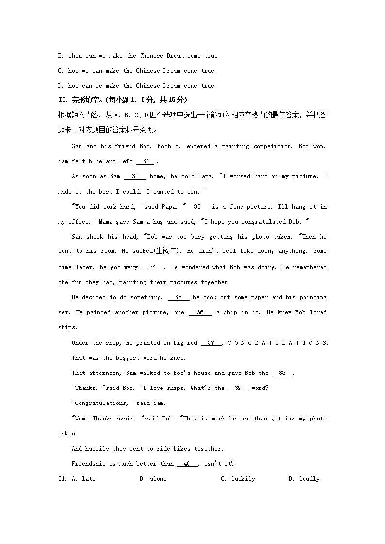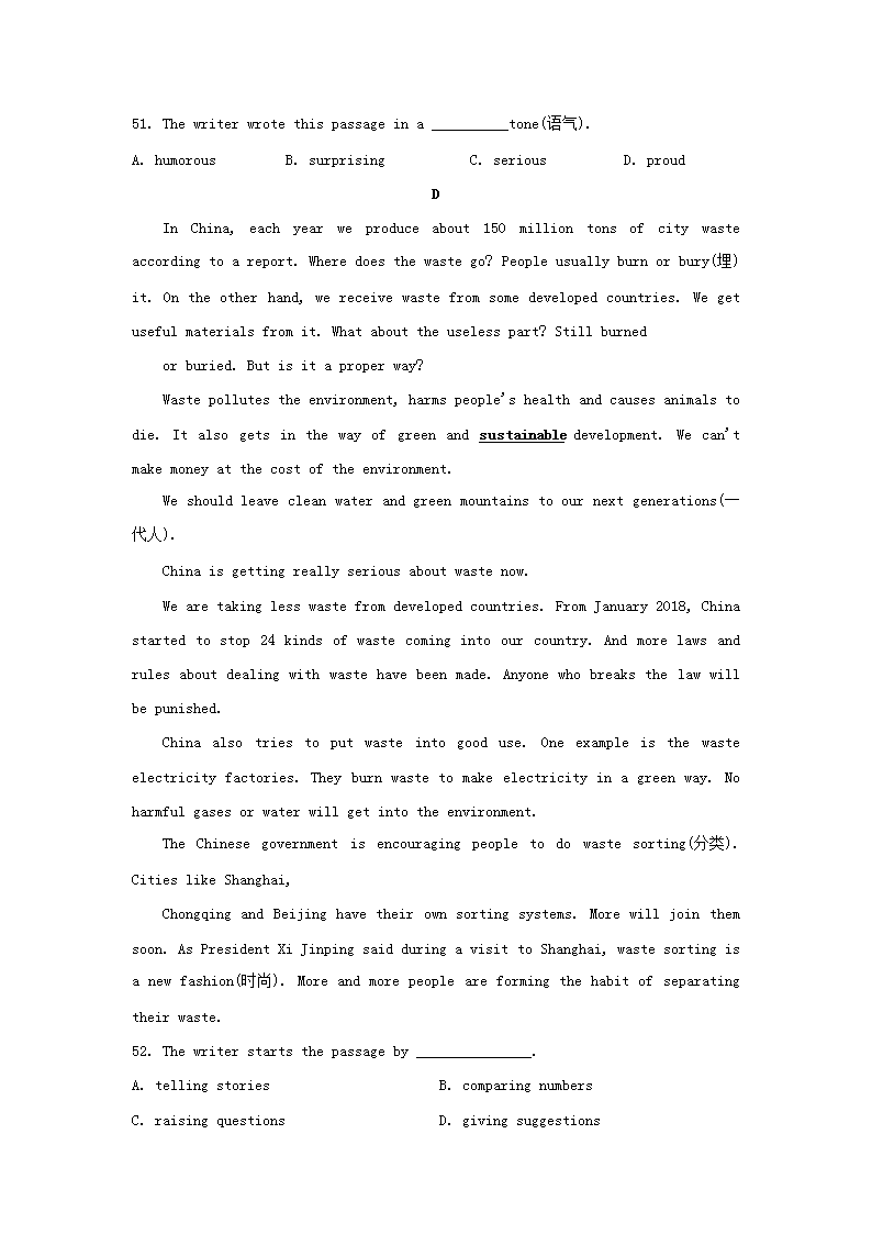 【文档名称】 2020年重庆市大渡口中考英语试题及答案(B卷)(Word版).doc
