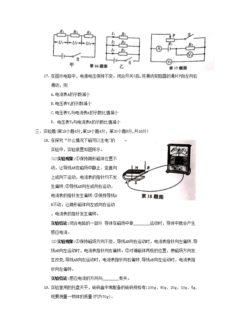 【文档名称】 2020年安徽六安中考物理真题及答案(Word版).doc