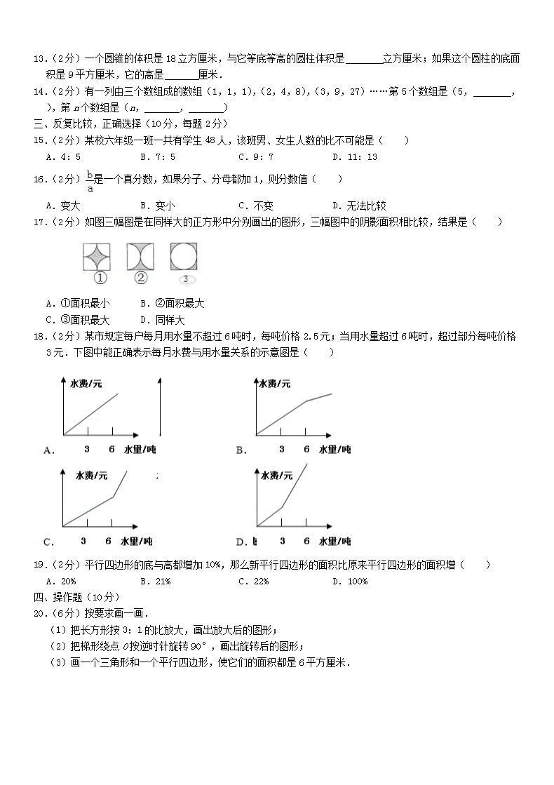 【文档名称】 2018年江苏无锡小升初数学真题及答案(Word版).doc