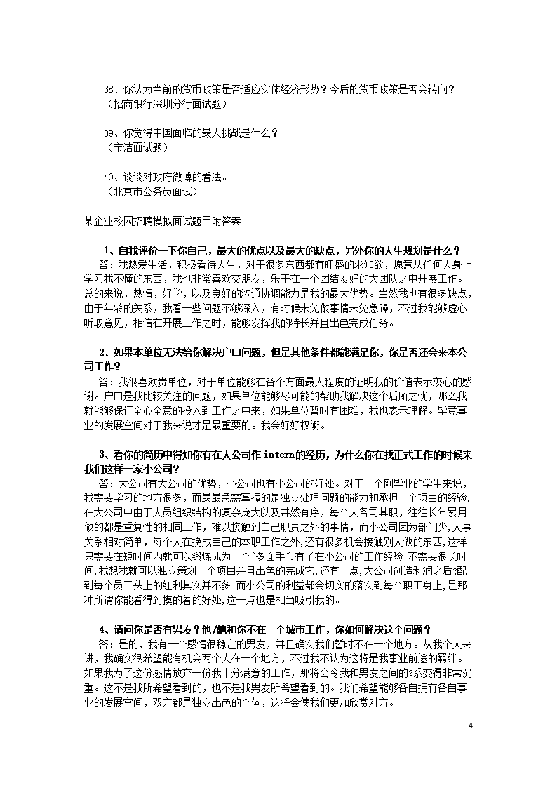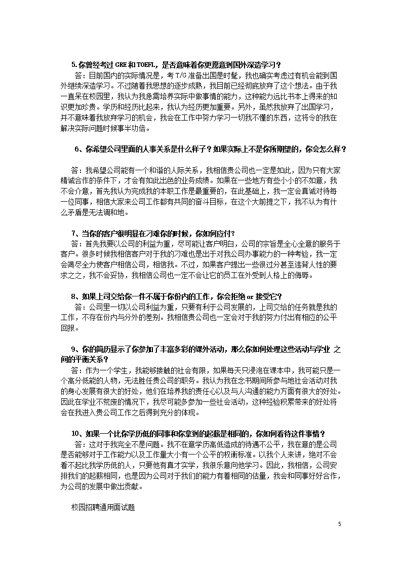 【文档预览】 无忧考网整理发布500强企业校招经典面试问题汇编含答案(Word版),前五页预览如下: