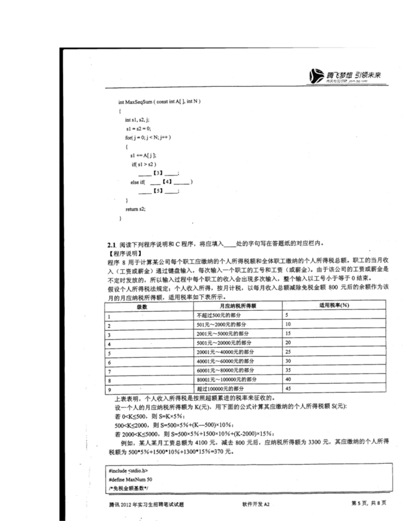 【文档预览】 无忧考网整理发布腾讯2012实习生招聘笔试试题(图片版),前五页预览如下: