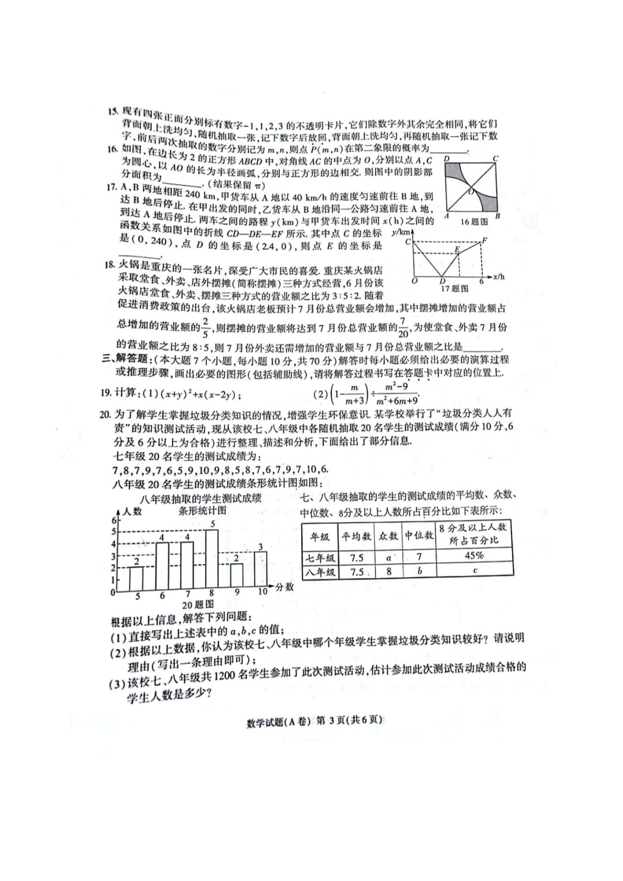 【文档名称】 2020年重庆市沙坪坝中考数学试题及答案(A卷)(图片版).doc