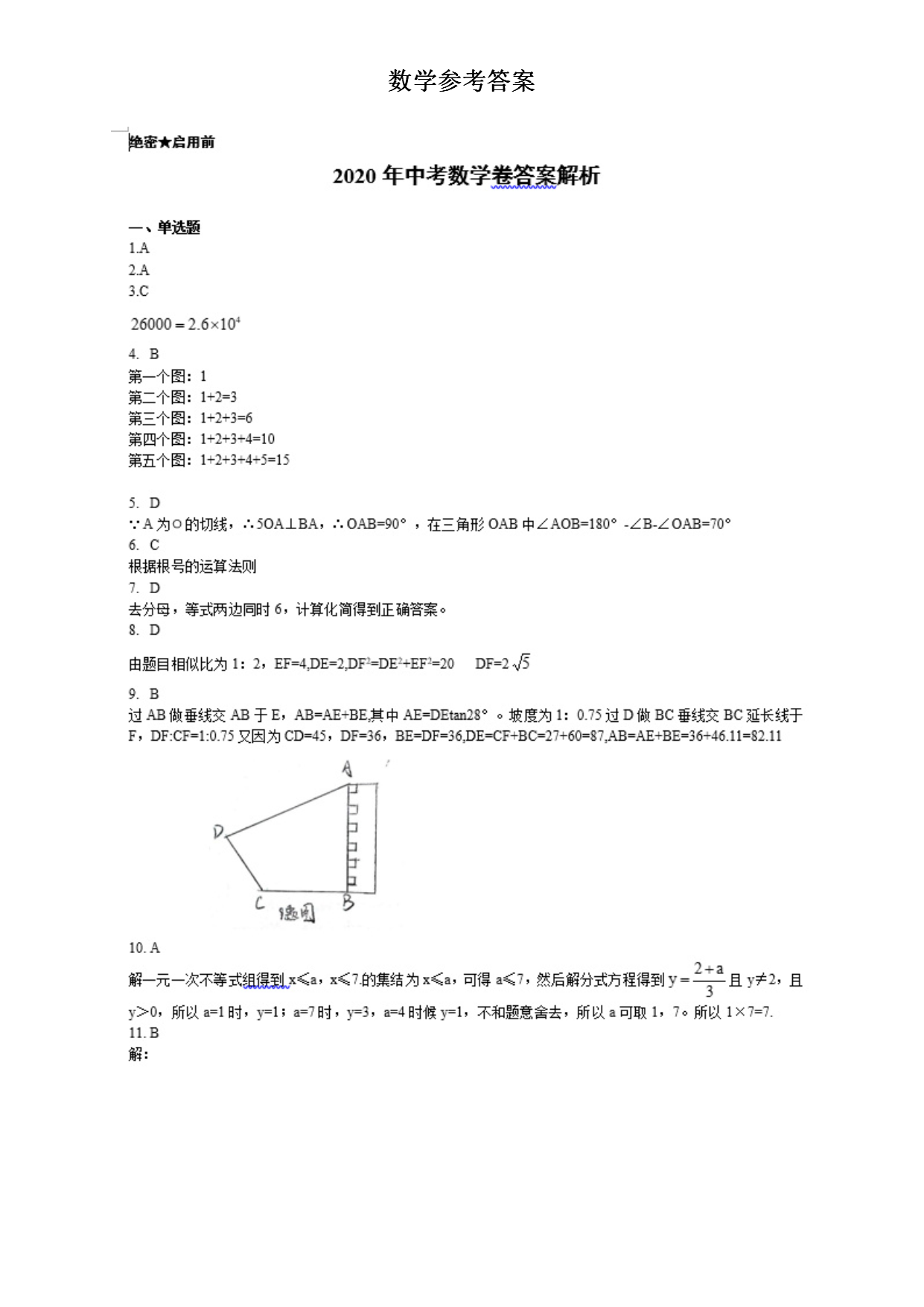 【文档名称】 2020年重庆市江北中考数学试题及答案(A卷)(图片版).doc