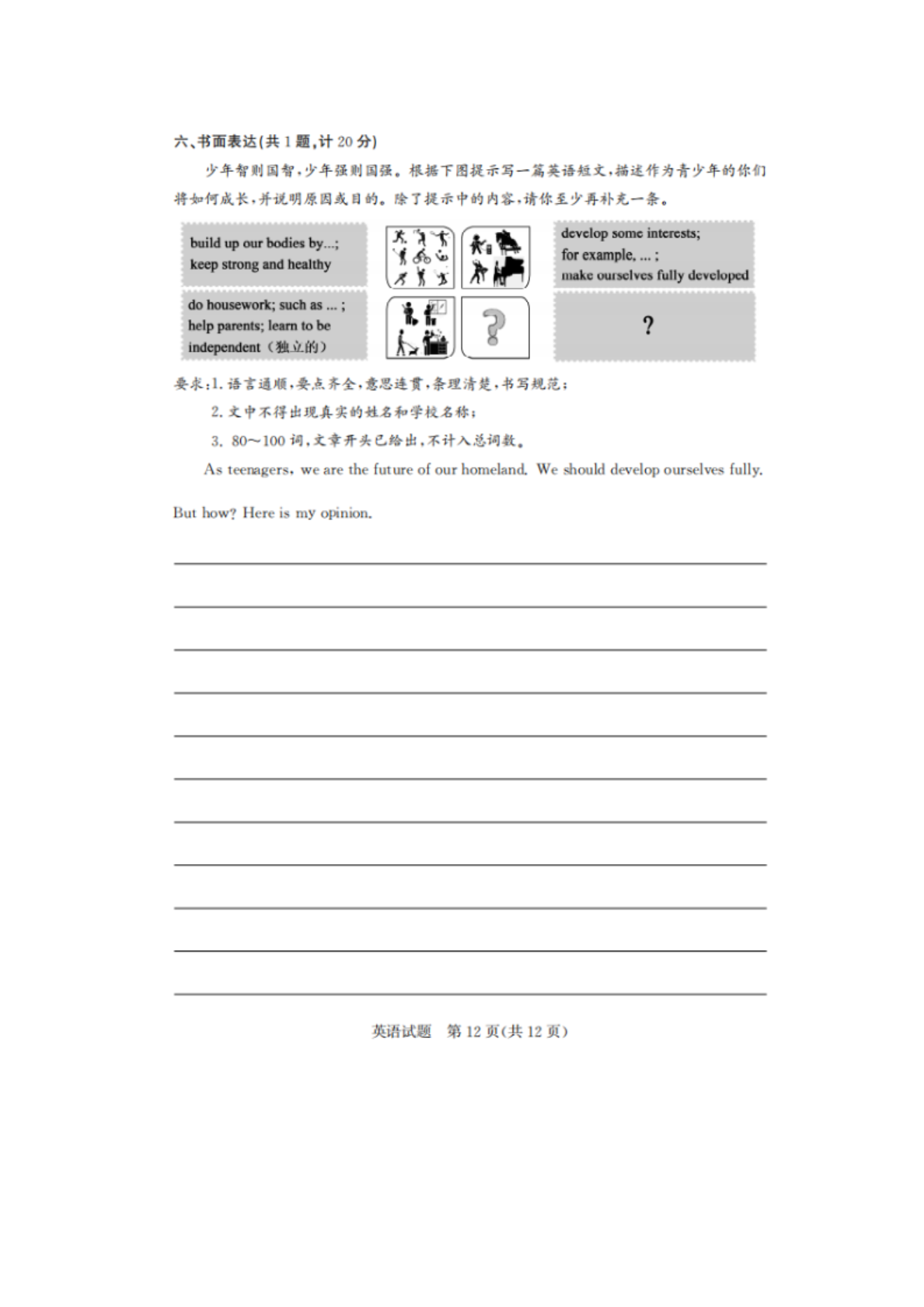 【文档名称】 2020年山东德州中考英语真题及答案(图片版).doc
