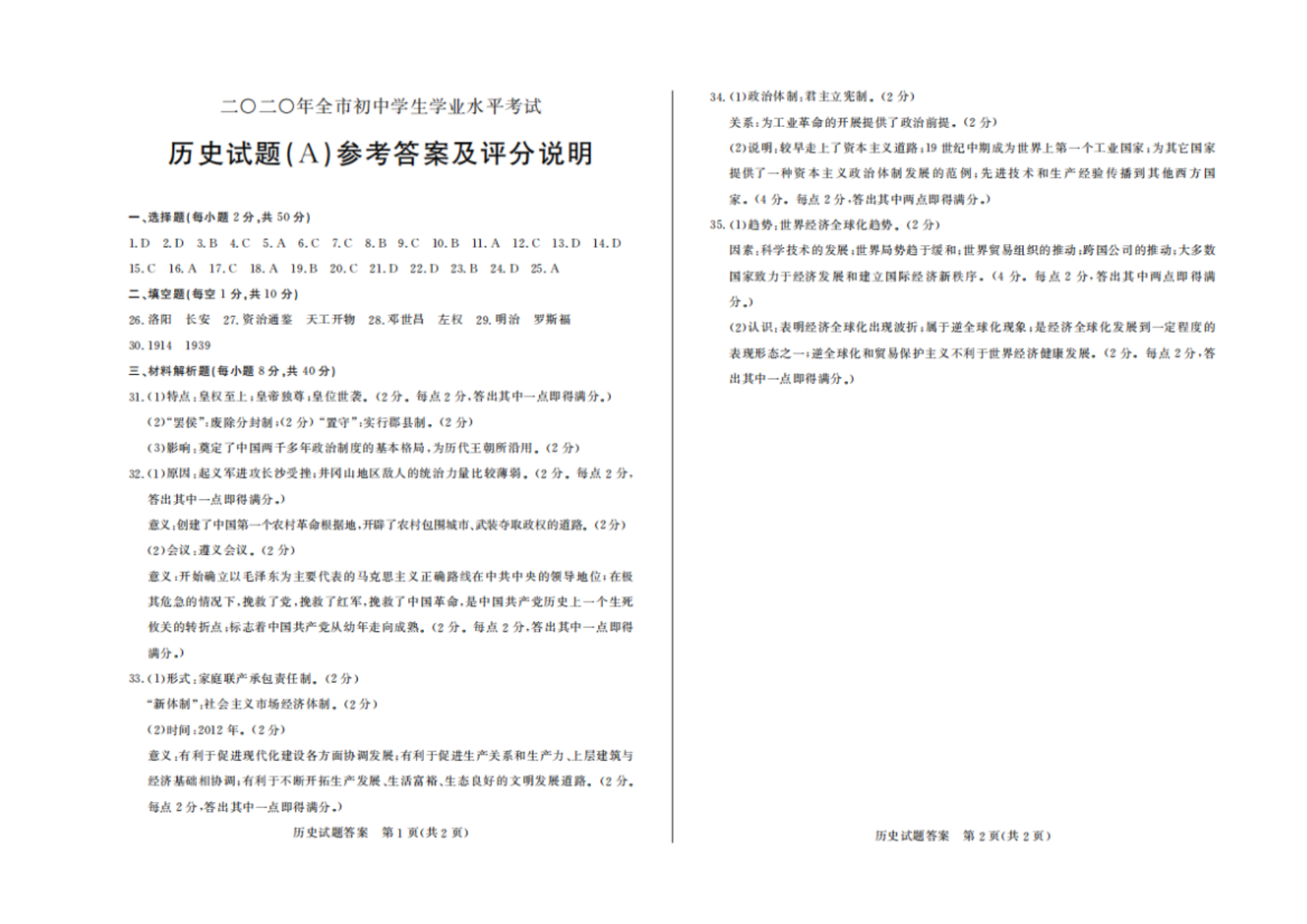 【文档名称】 2020年山东聊城中考历史真题及答案(图片版).doc