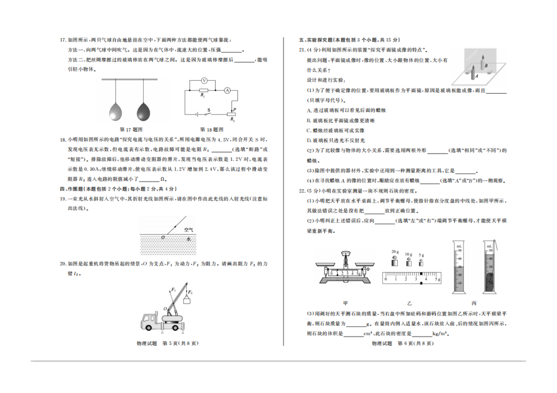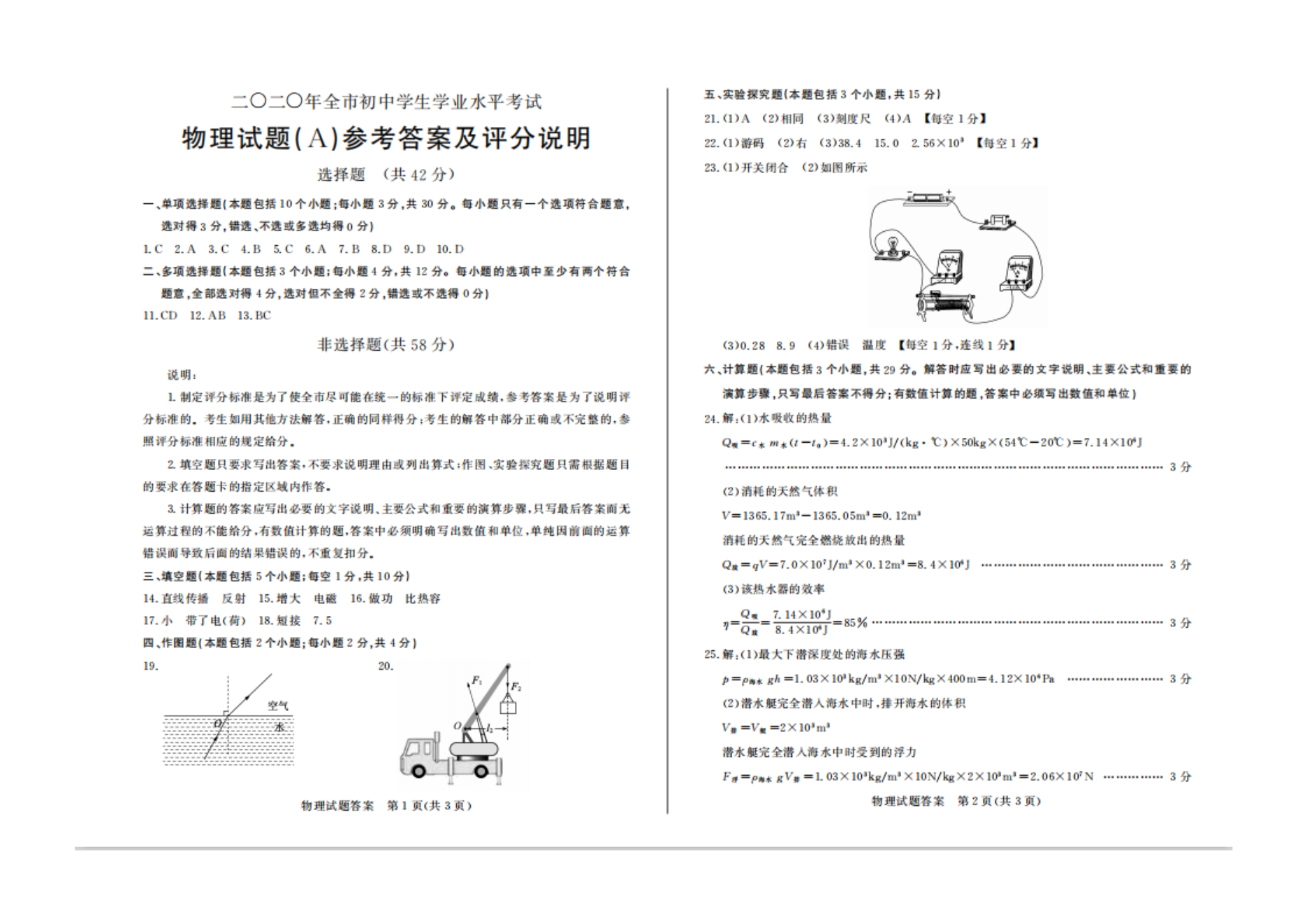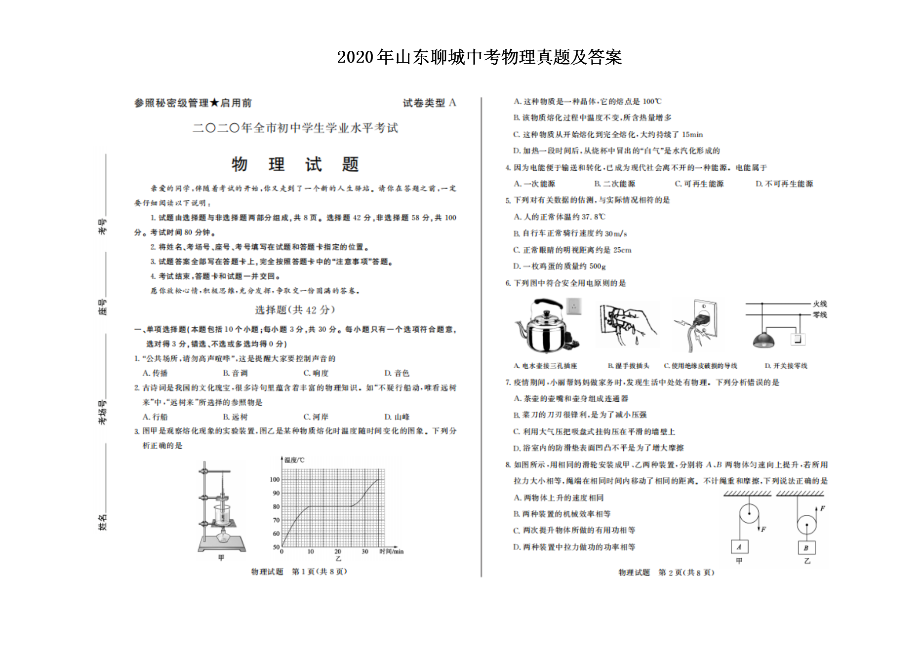 【文档名称】 2020年山东聊城中考物理真题及答案(图片版).doc