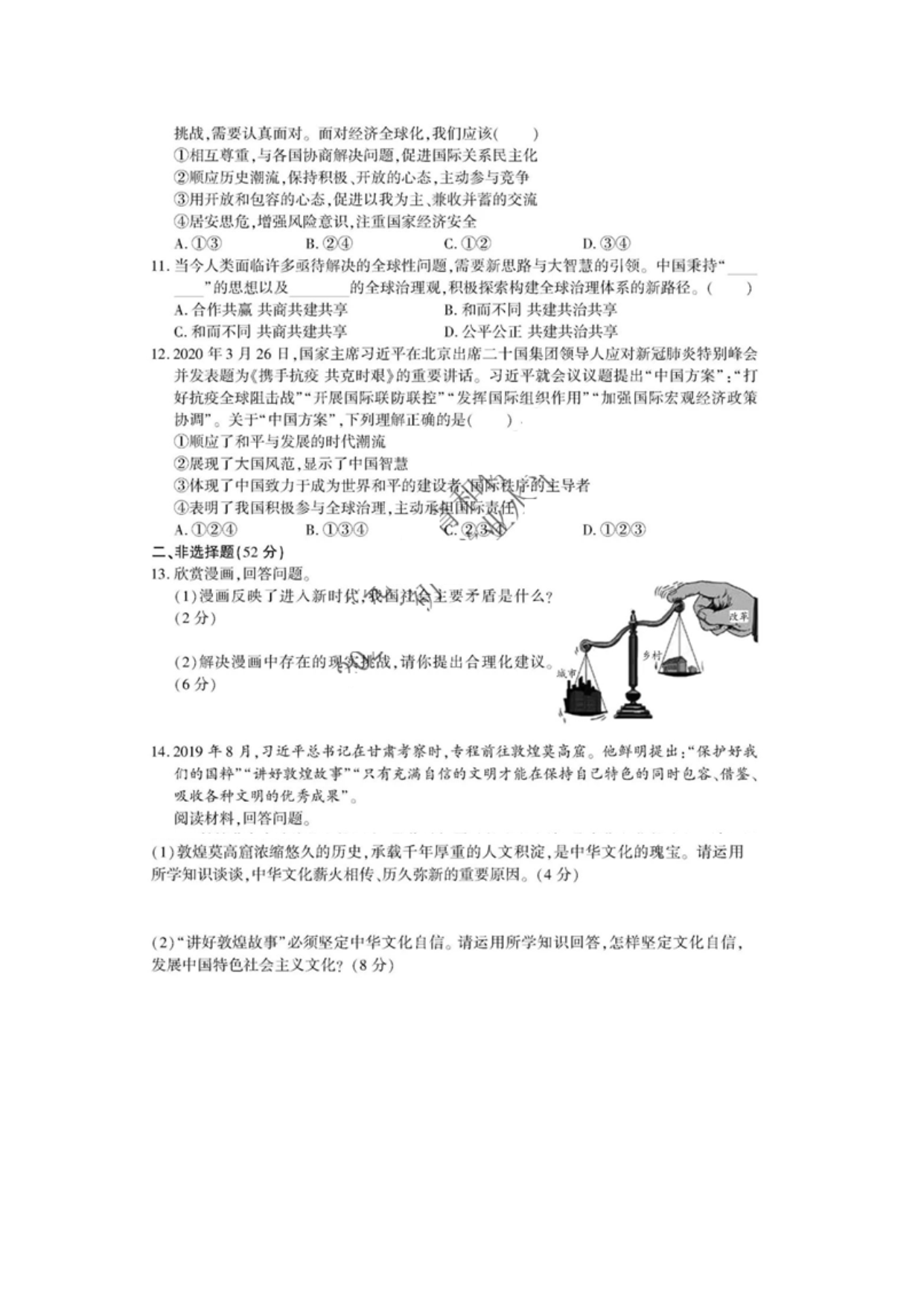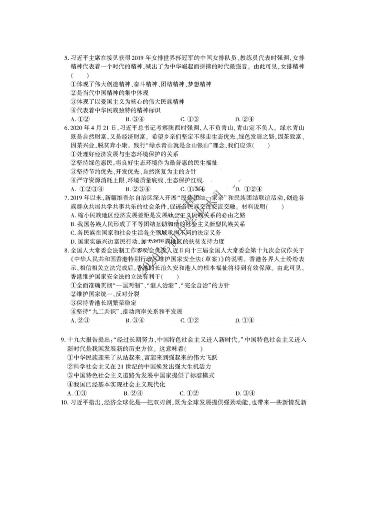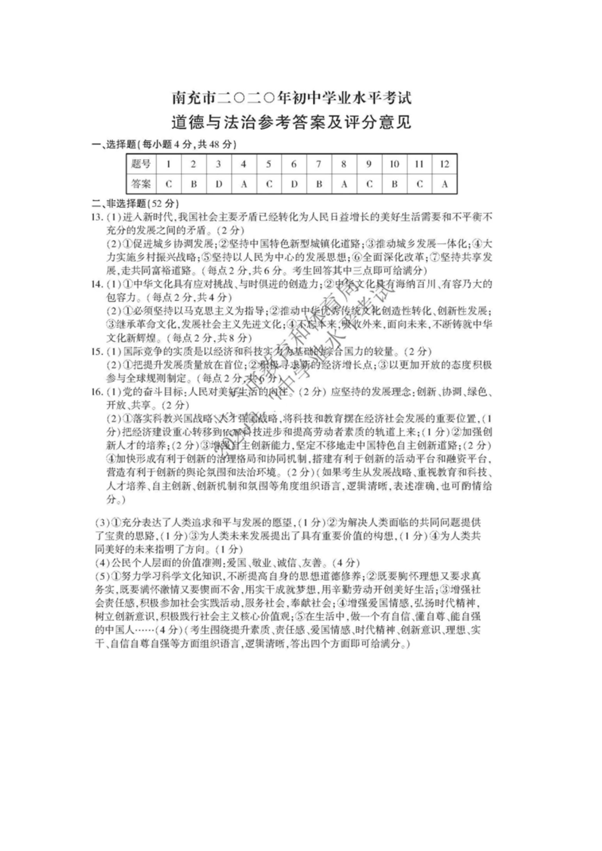 【文档名称】 2020年四川南充中考政治真题及答案(图片版).doc