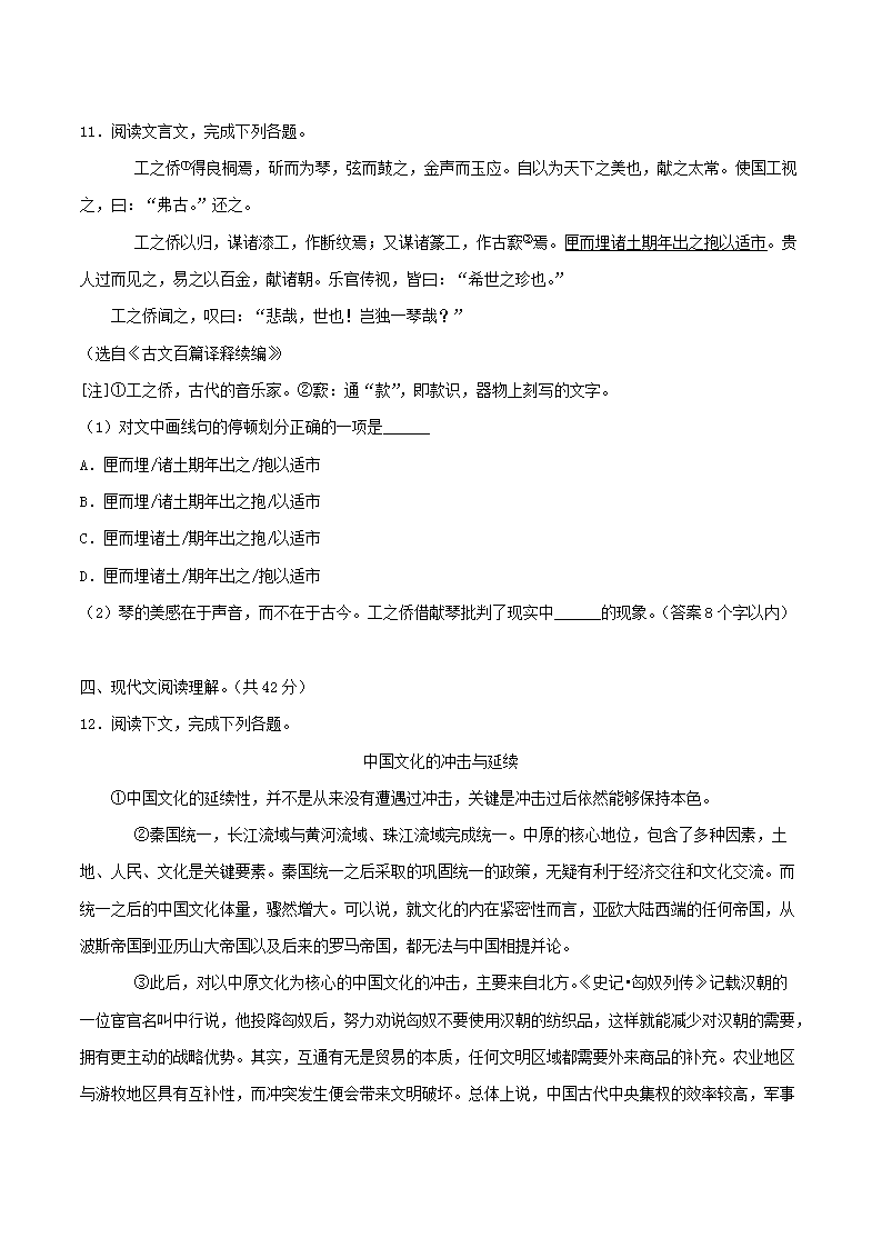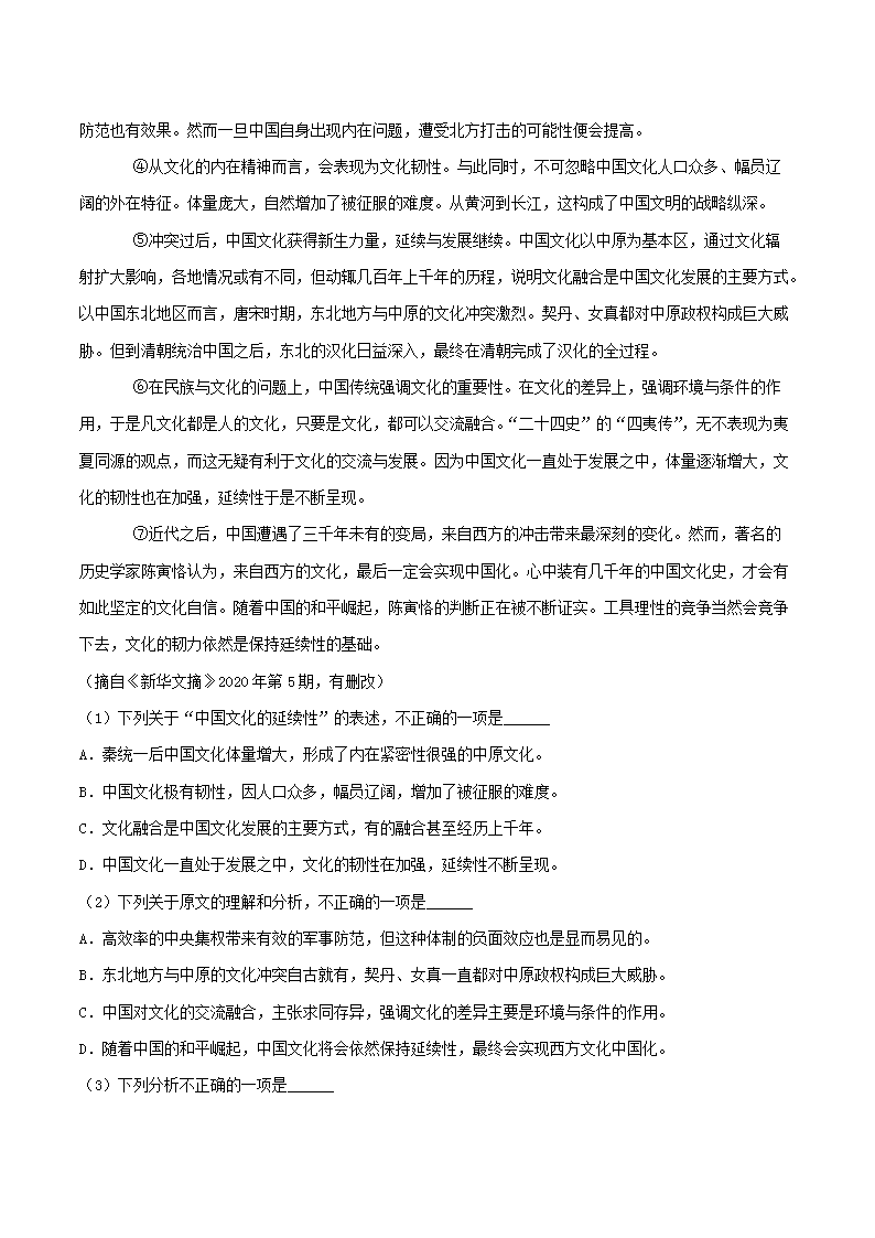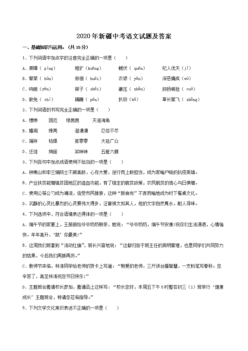 【文档名称】 2020年新疆中考语文试题及答案(Word版).doc