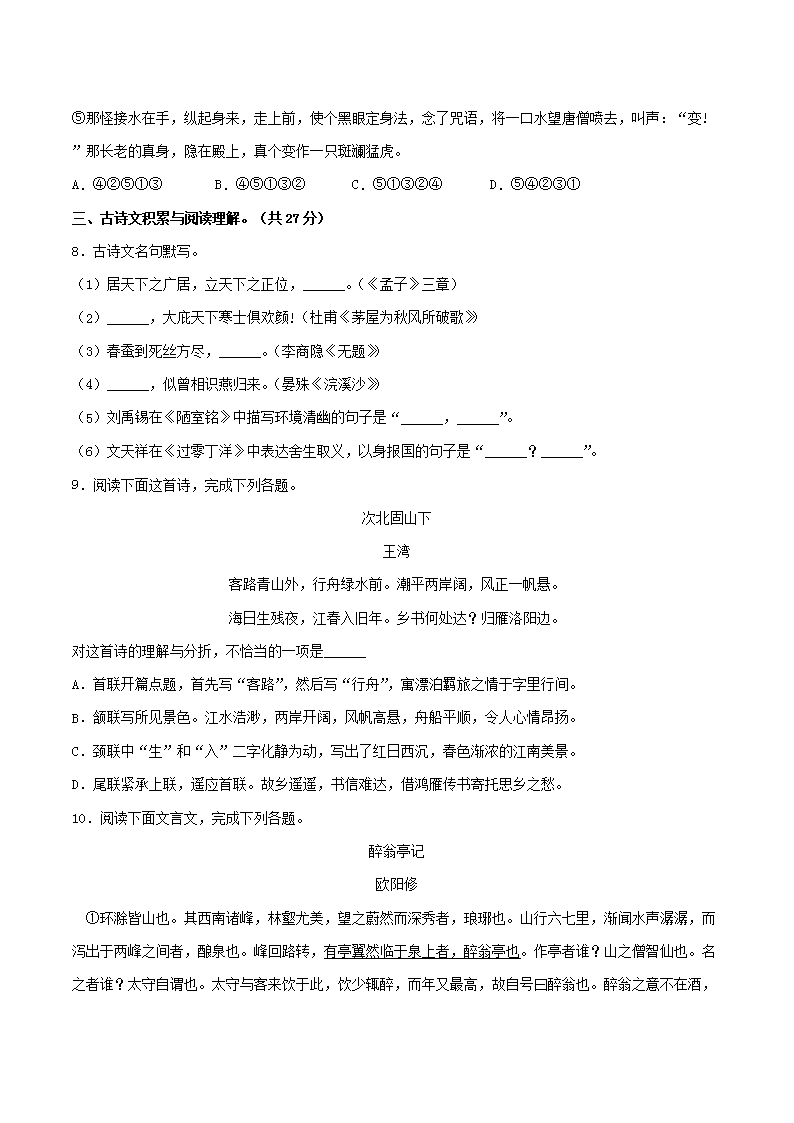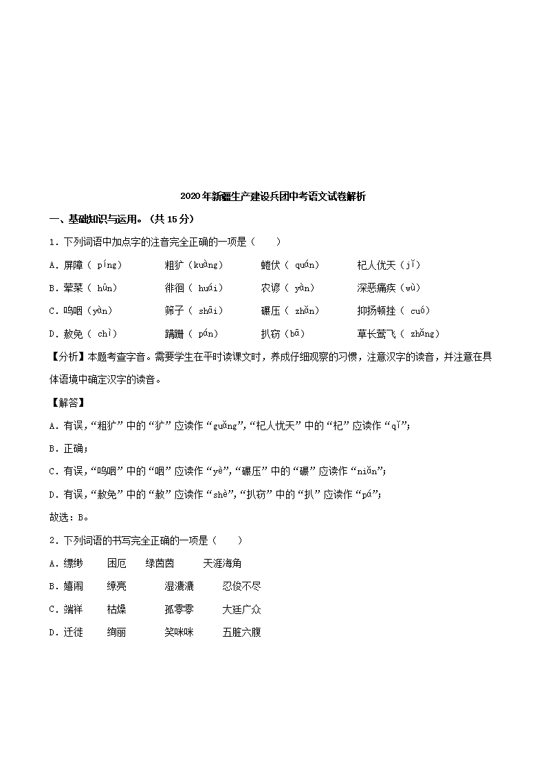 【文档预览】 无忧考网整理发布2020年新疆中考语文试题及答案(Word版),前五页预览如下: