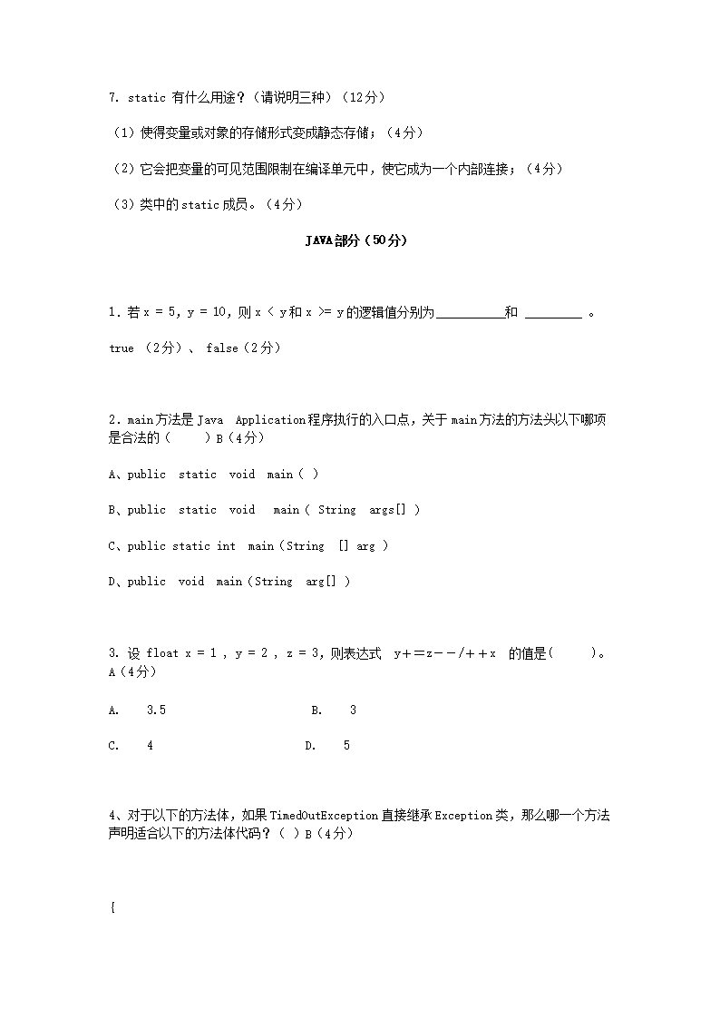 【文档名称】 中兴公司招聘计算机专业应届生笔试试卷第十二套(Word版).doc