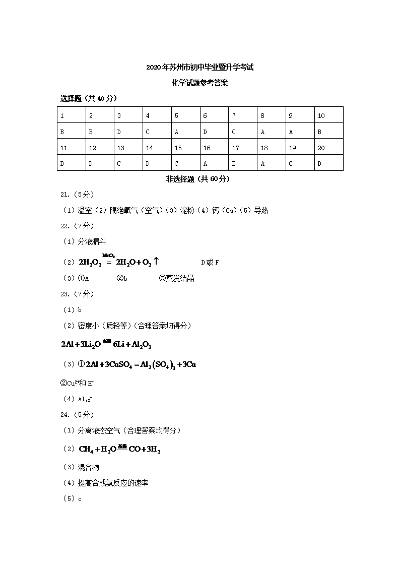 【文档名称】 2020年江苏苏州中考化学真题及答案(Word版).doc