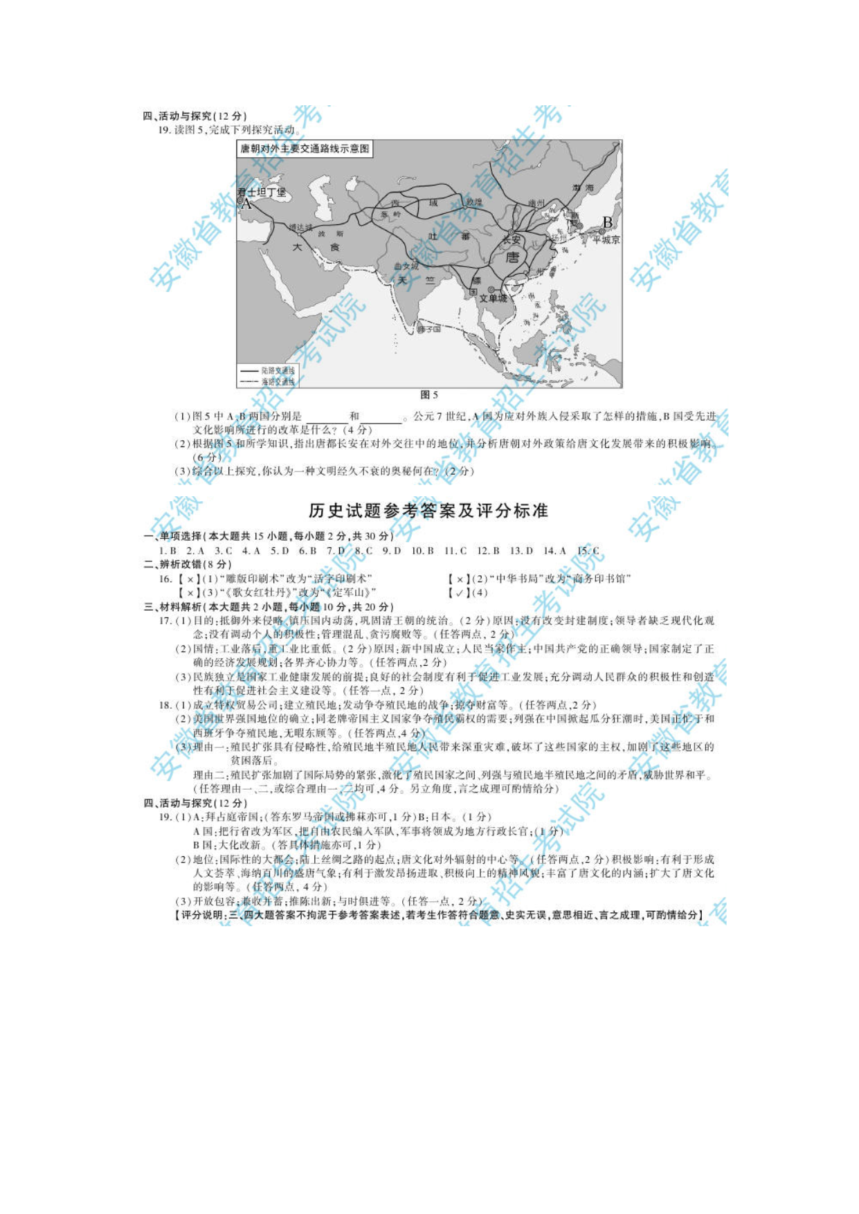 【文档预览】 无忧考网整理发布2020年安徽马鞍山中考历史真题及答案(图片版),前五页预览如下: