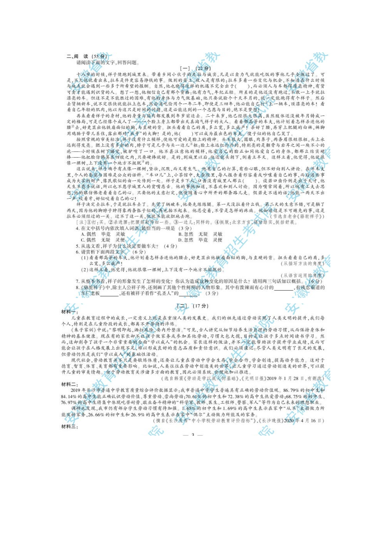 【文档预览】 无忧考网整理发布2020年安徽淮北中考语文真题及答案(图片版),前五页预览如下: