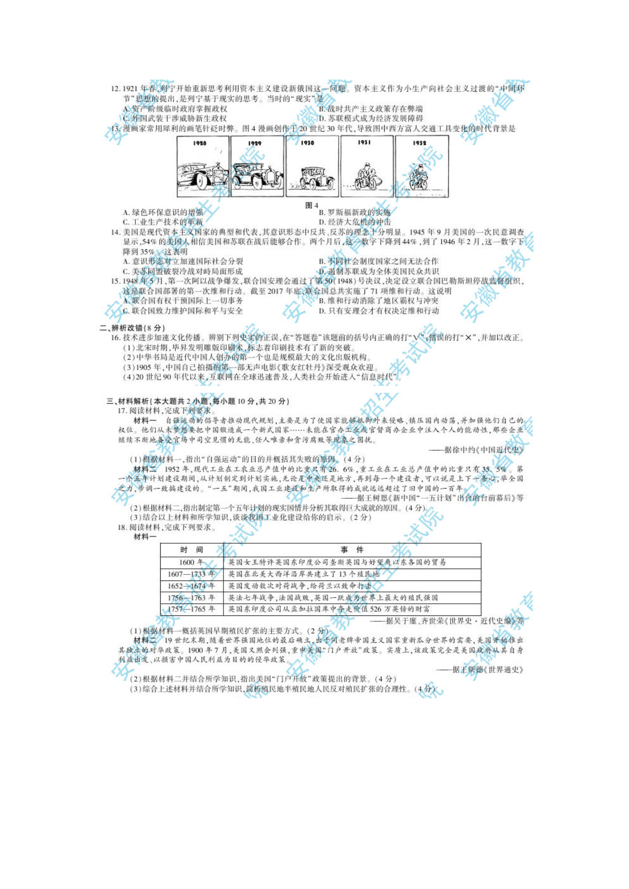 【文档预览】 无忧考网整理发布2020年安徽阜阳中考历史真题及答案(图片版),前五页预览如下: