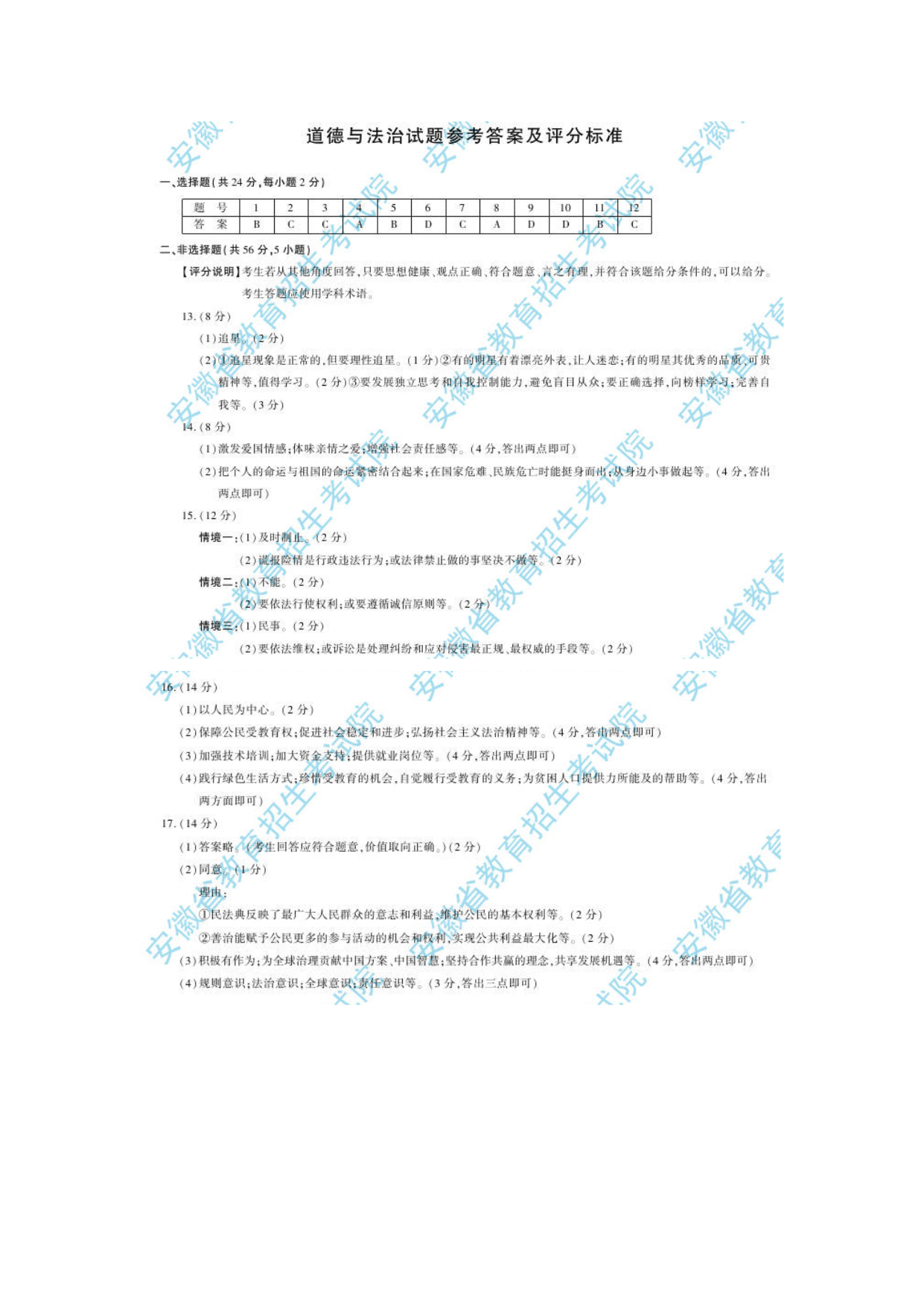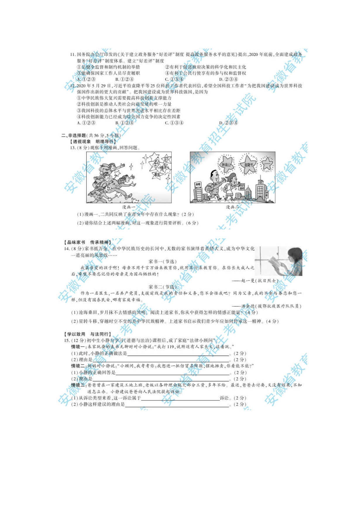 【文档预览】 无忧考网整理发布2020年安徽阜阳中考道德与法治真题及答案(图片版),前五页预览如下: