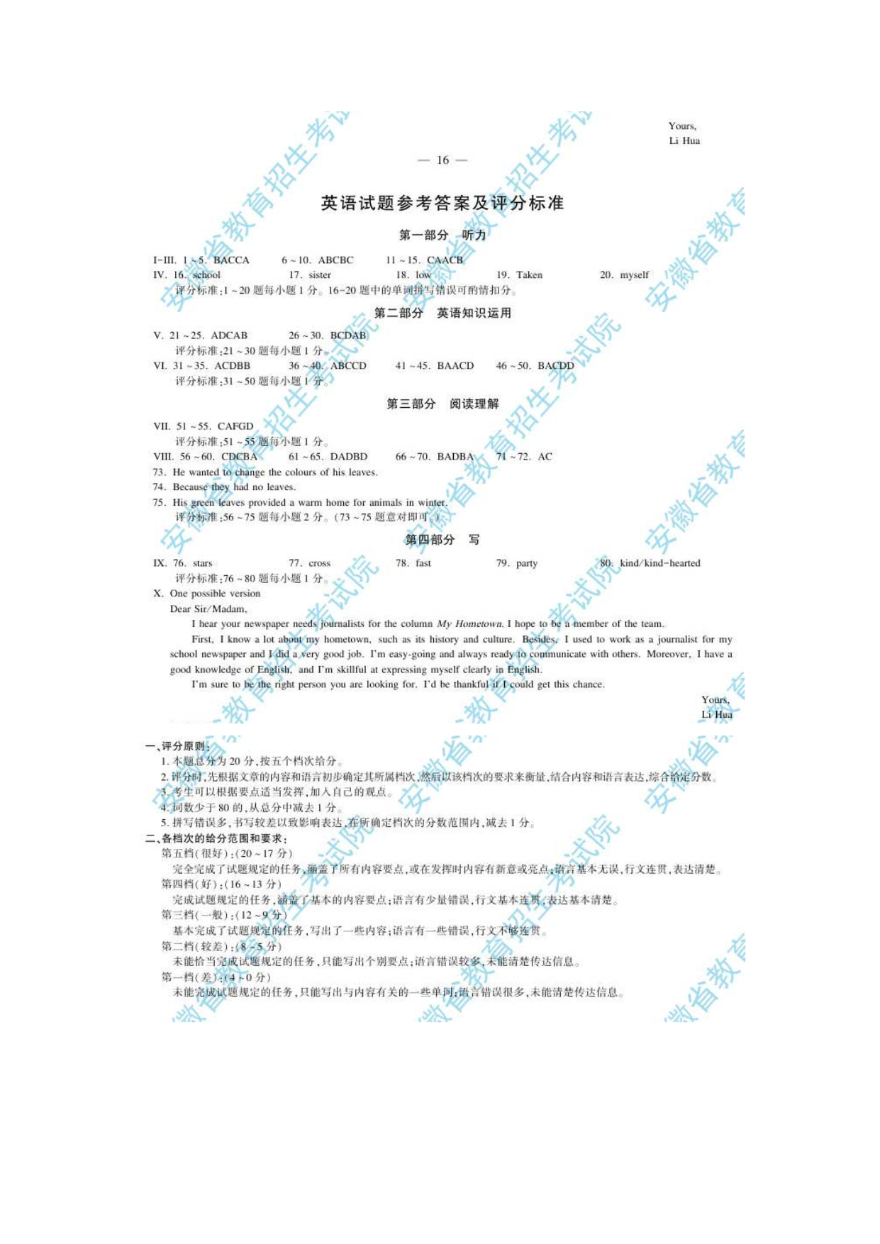 【文档预览】 无忧考网整理发布2020年安徽淮南中考英语真题及答案(图片版),前五页预览如下: