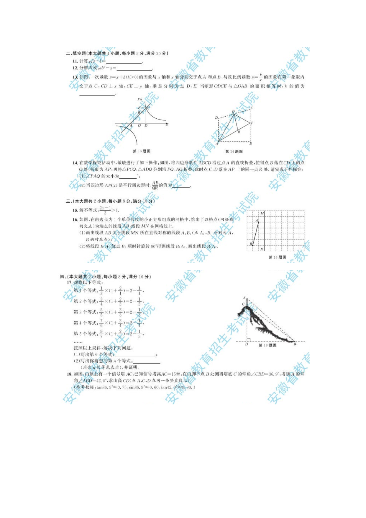 【文档预览】 无忧考网整理发布2020年安徽淮南中考数学真题及答案(图片版),前五页预览如下:
