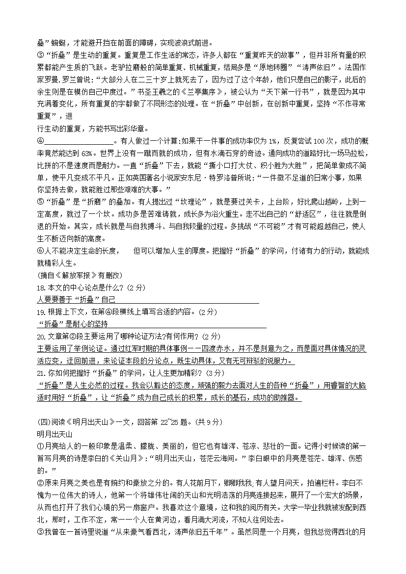 【文档名称】 2020黑龙江双鸭山中考语文真题及答案(Word版).doc
