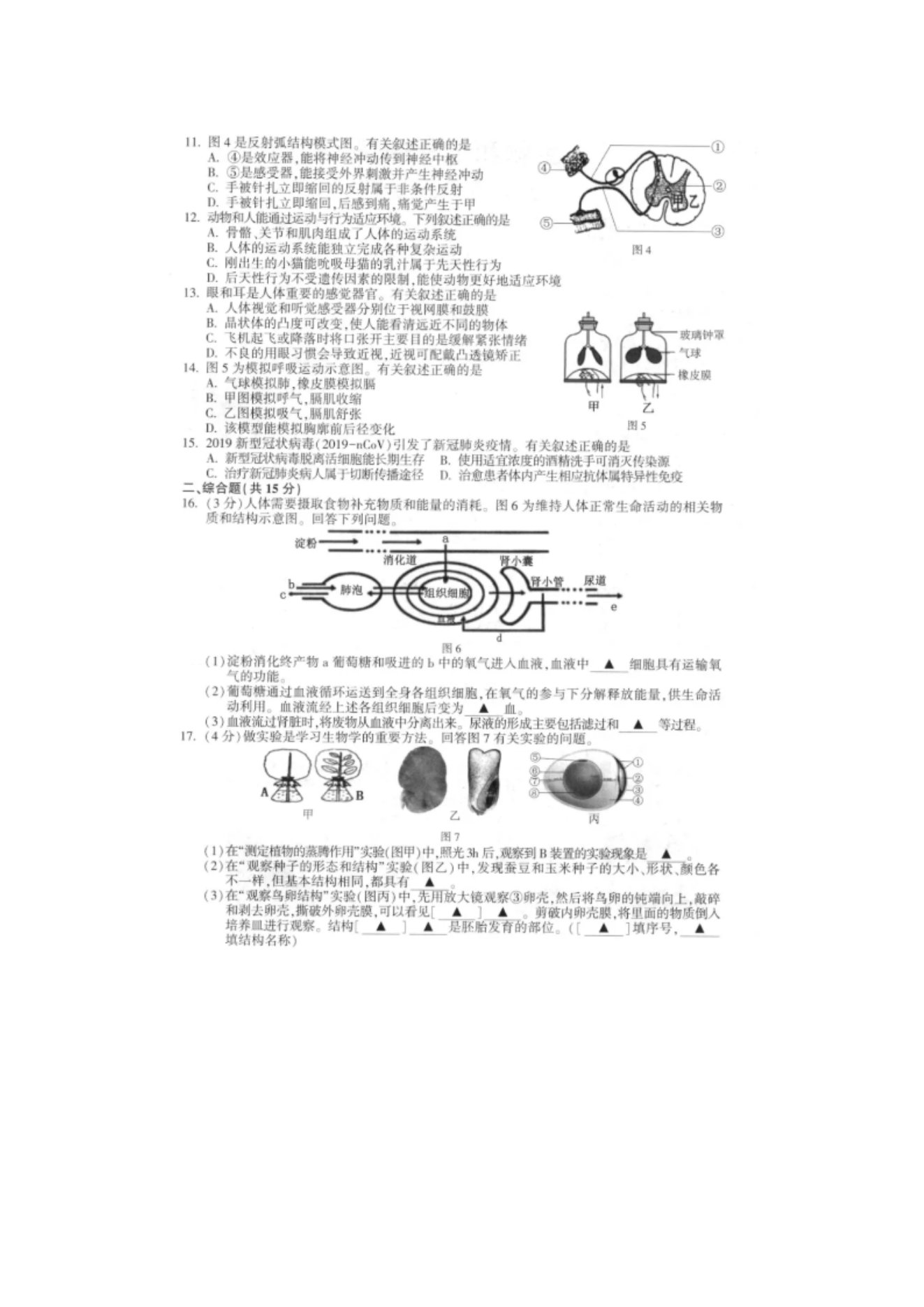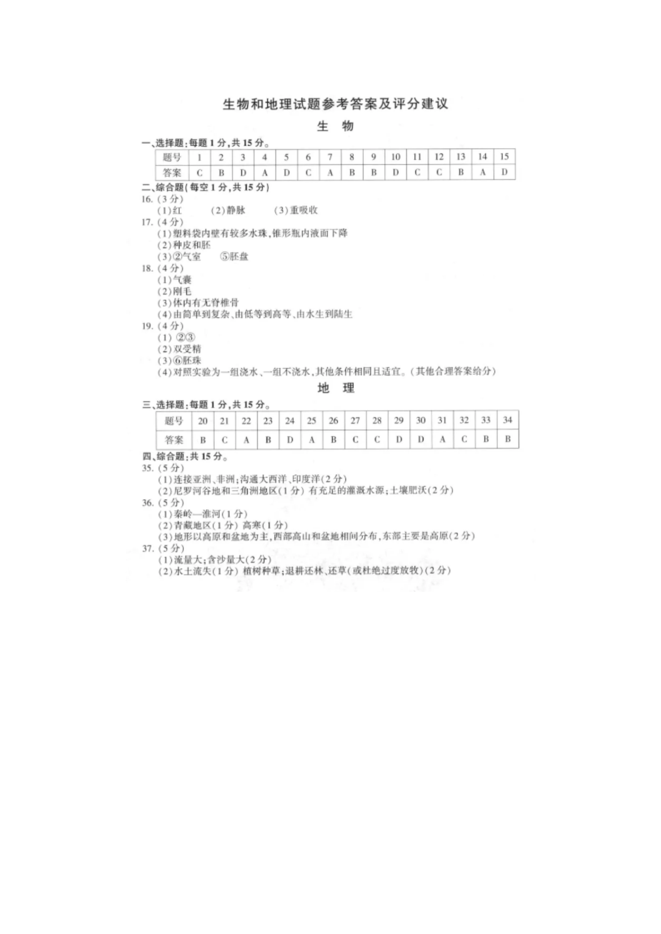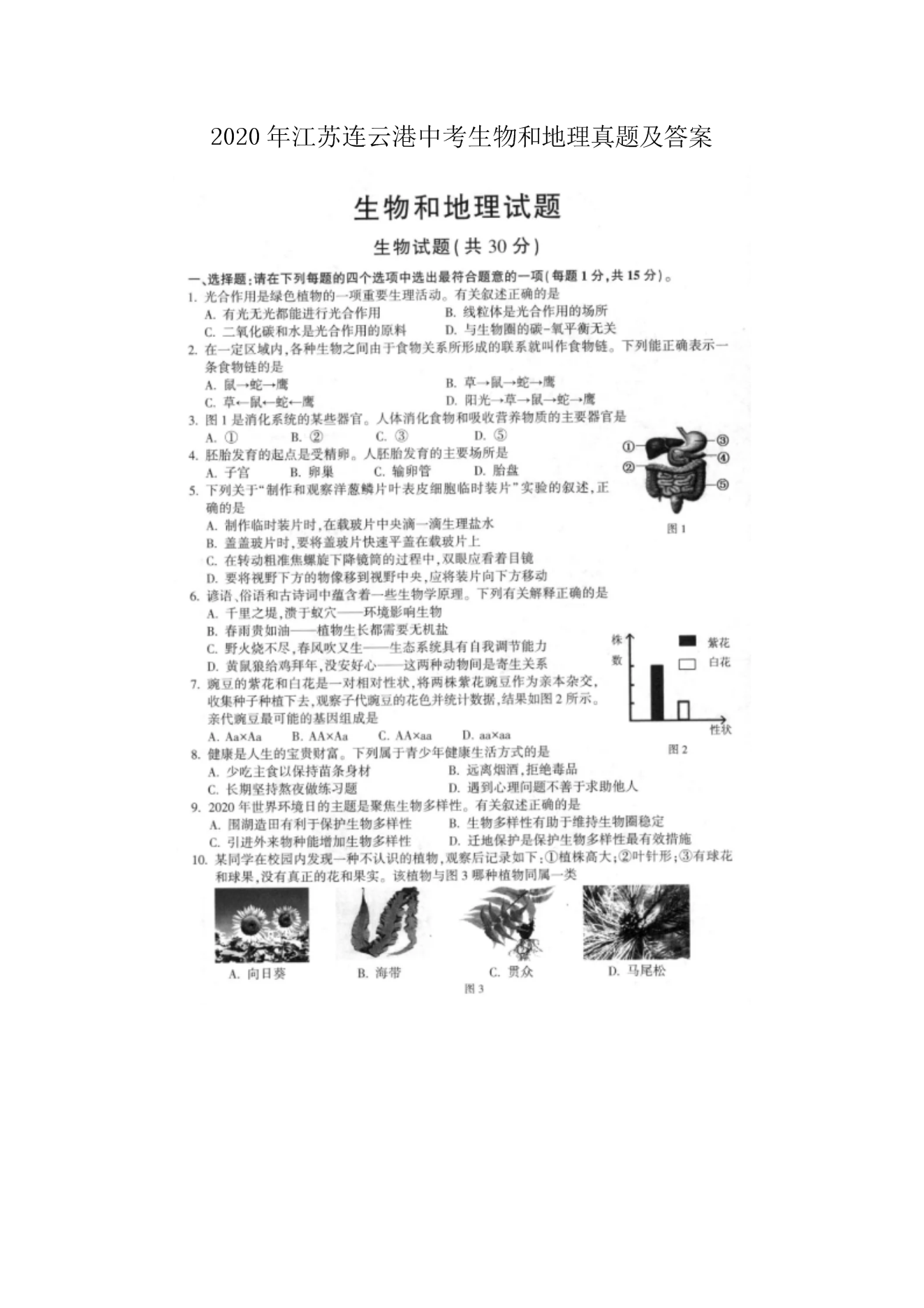 【文档名称】 2020年江苏连云港中考生物和地理真题及答案(图片版).doc