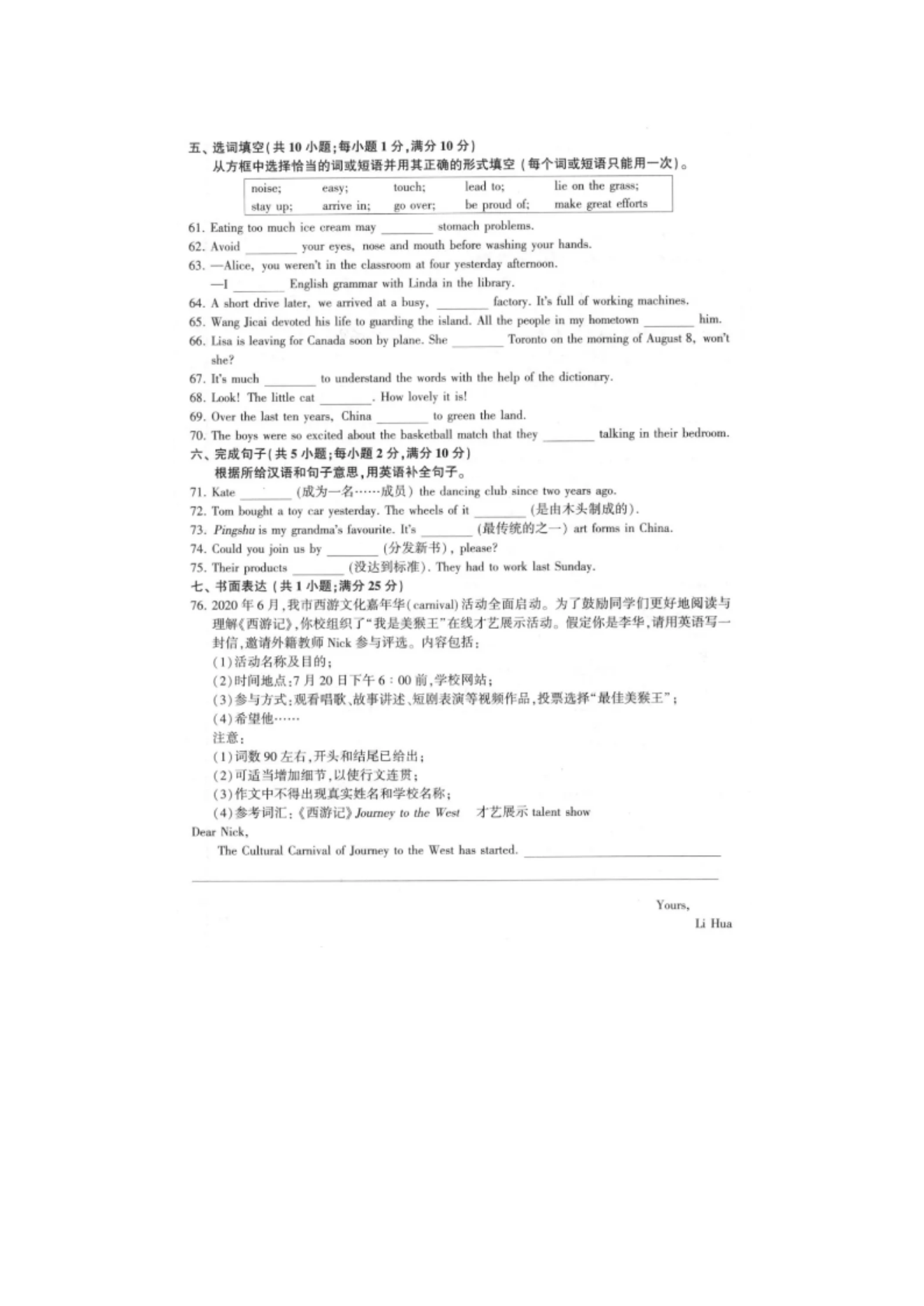 【文档名称】 2020年江苏连云港中考英语真题及答案(图片版).doc