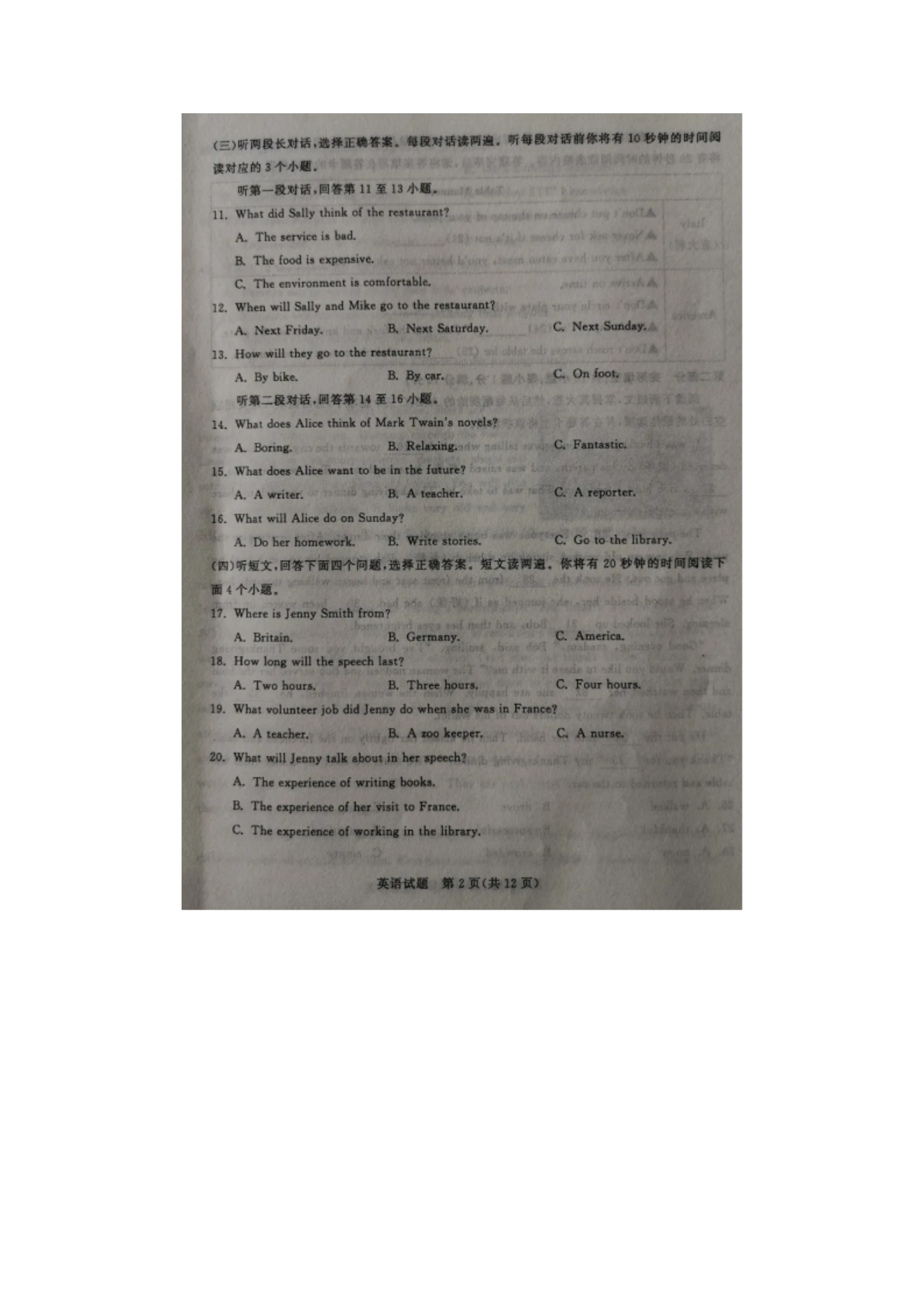 【文档预览】 无忧考网整理发布2020年山东泰安中考英语真题及答案(图片版),前五页预览如下: