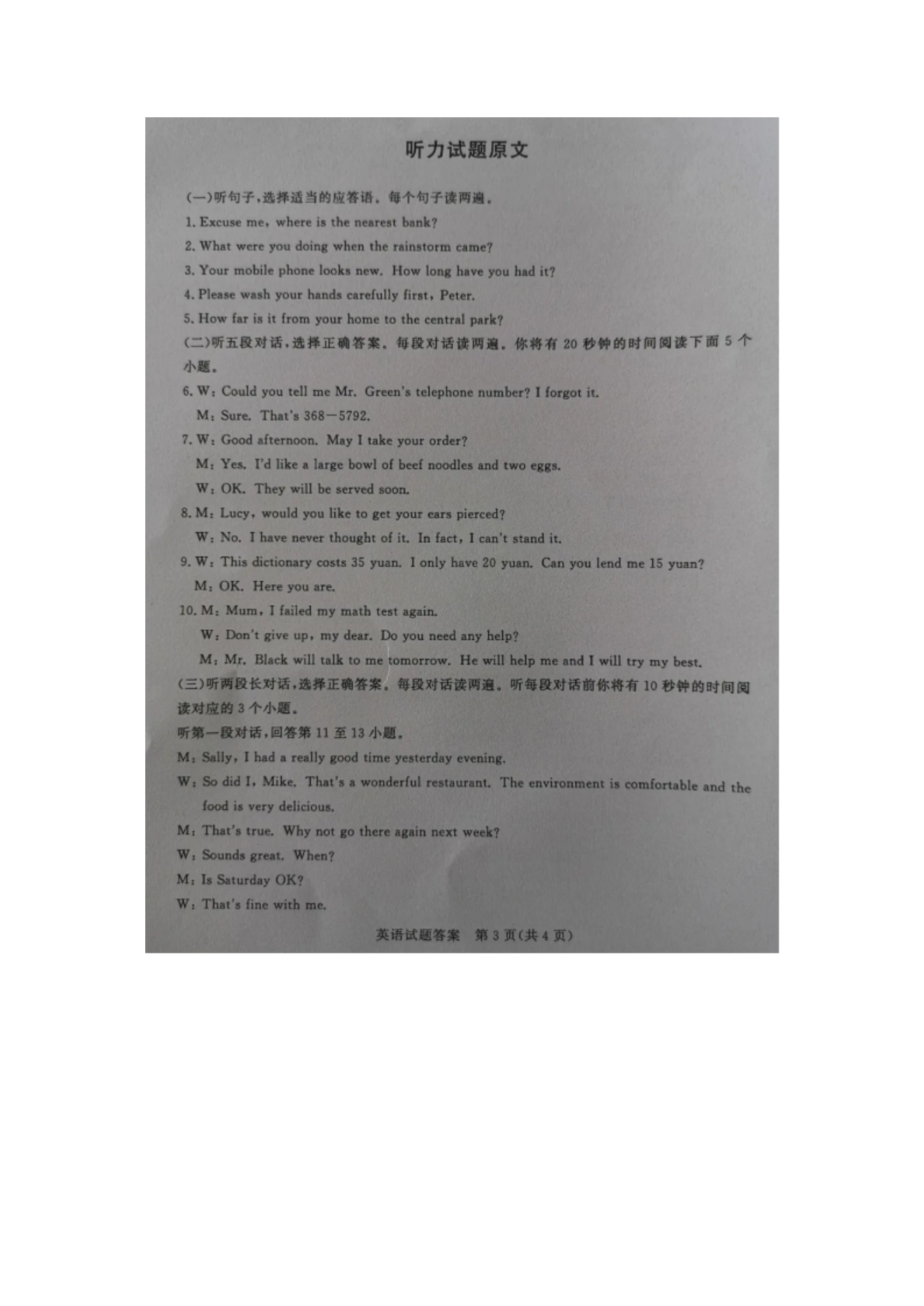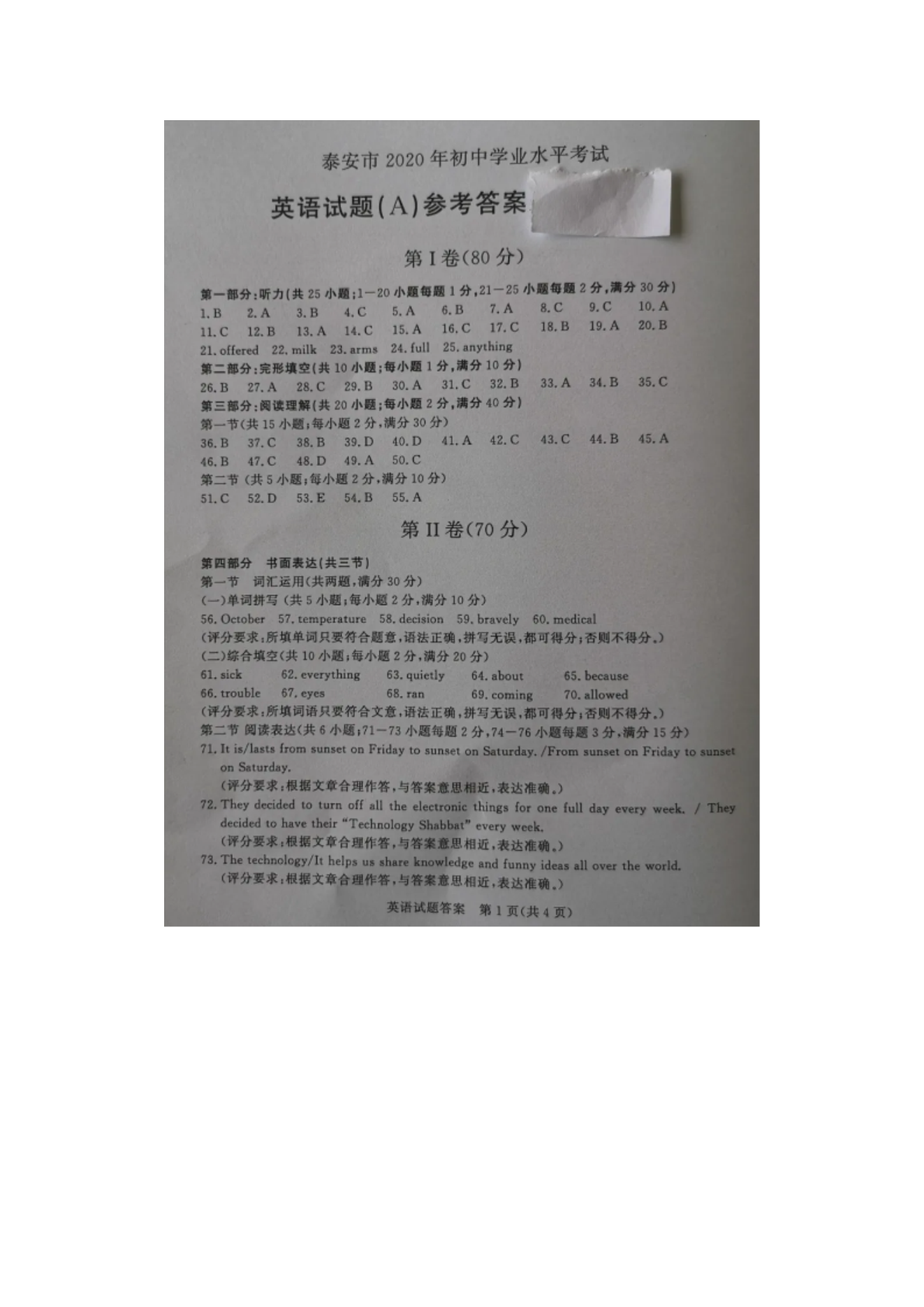 【文档名称】 2020年山东泰安中考英语真题及答案(图片版).doc