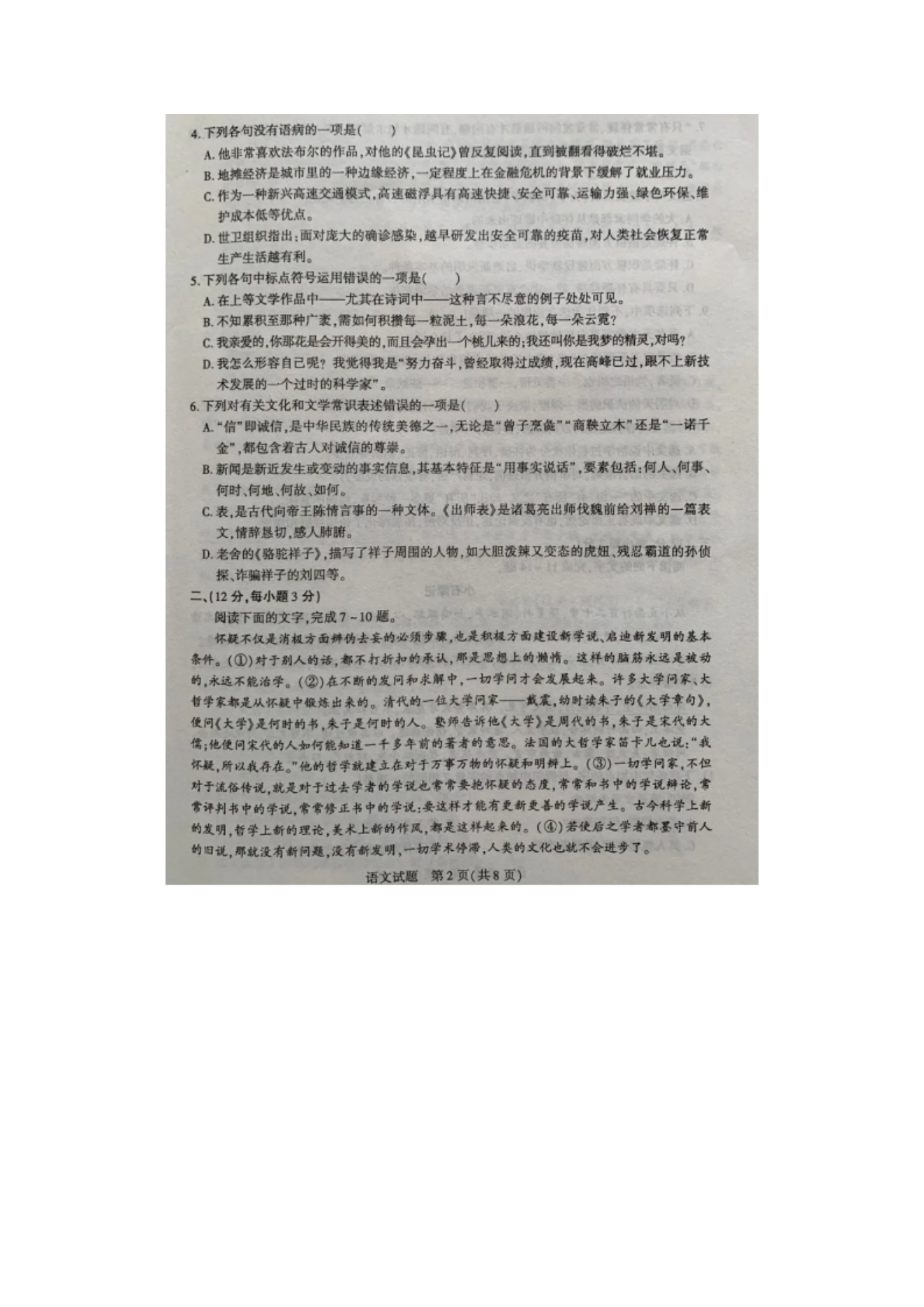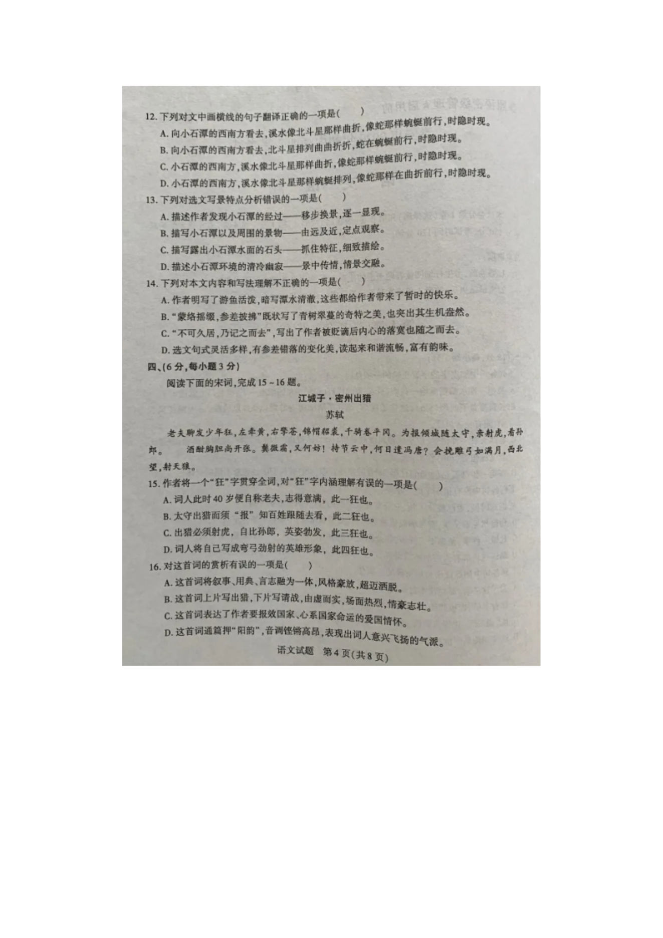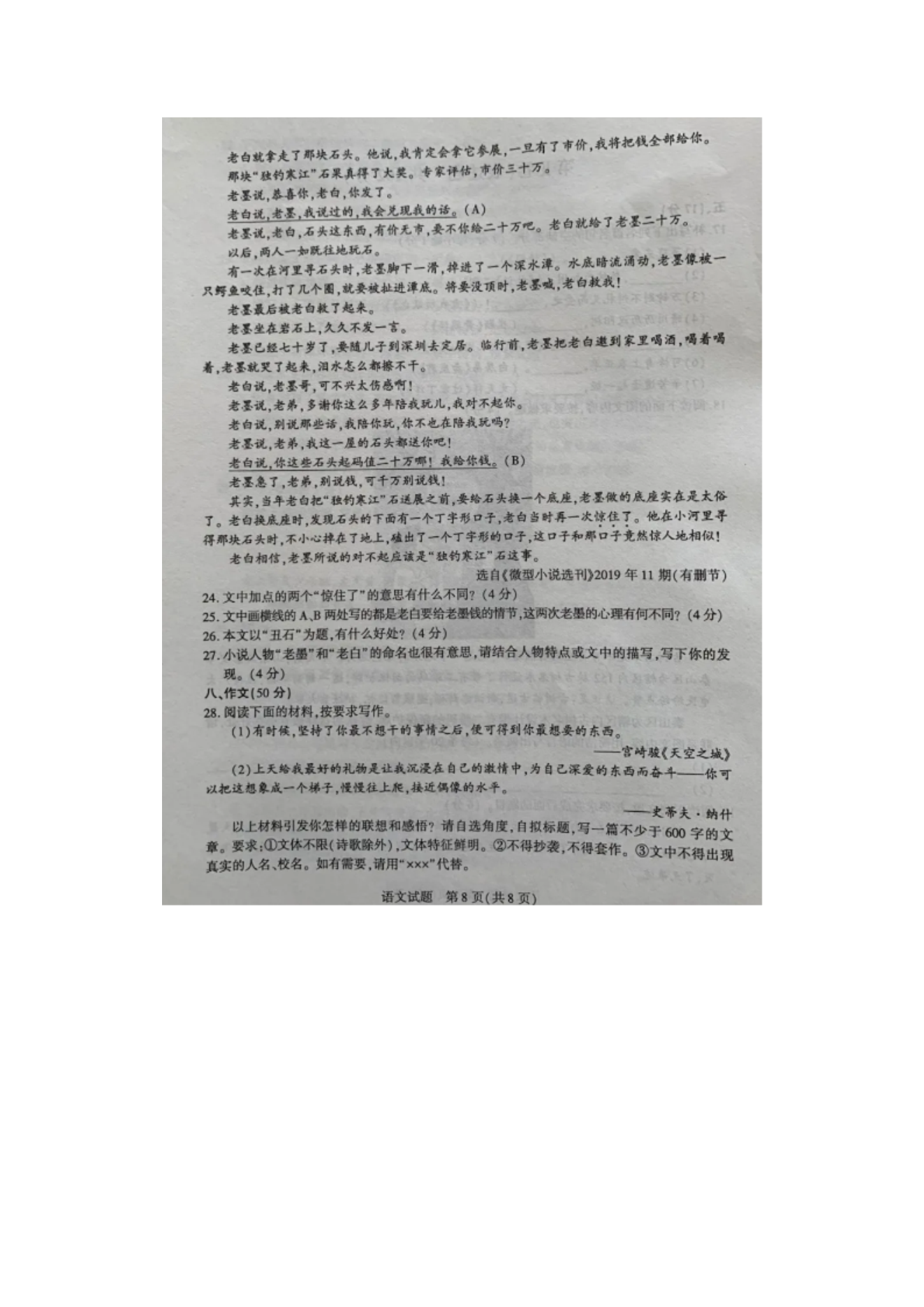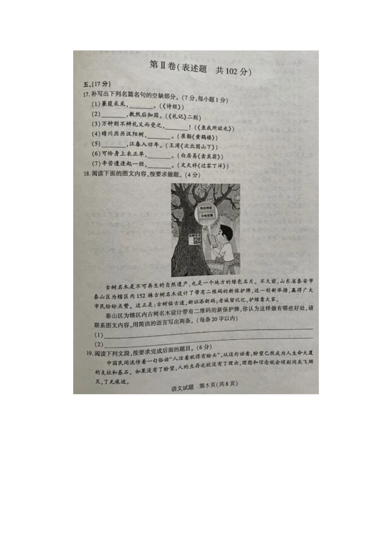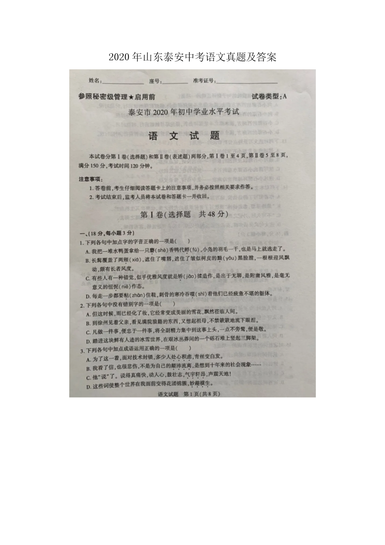 【文档名称】 2020年山东泰安中考语文真题及答案(图片版).doc