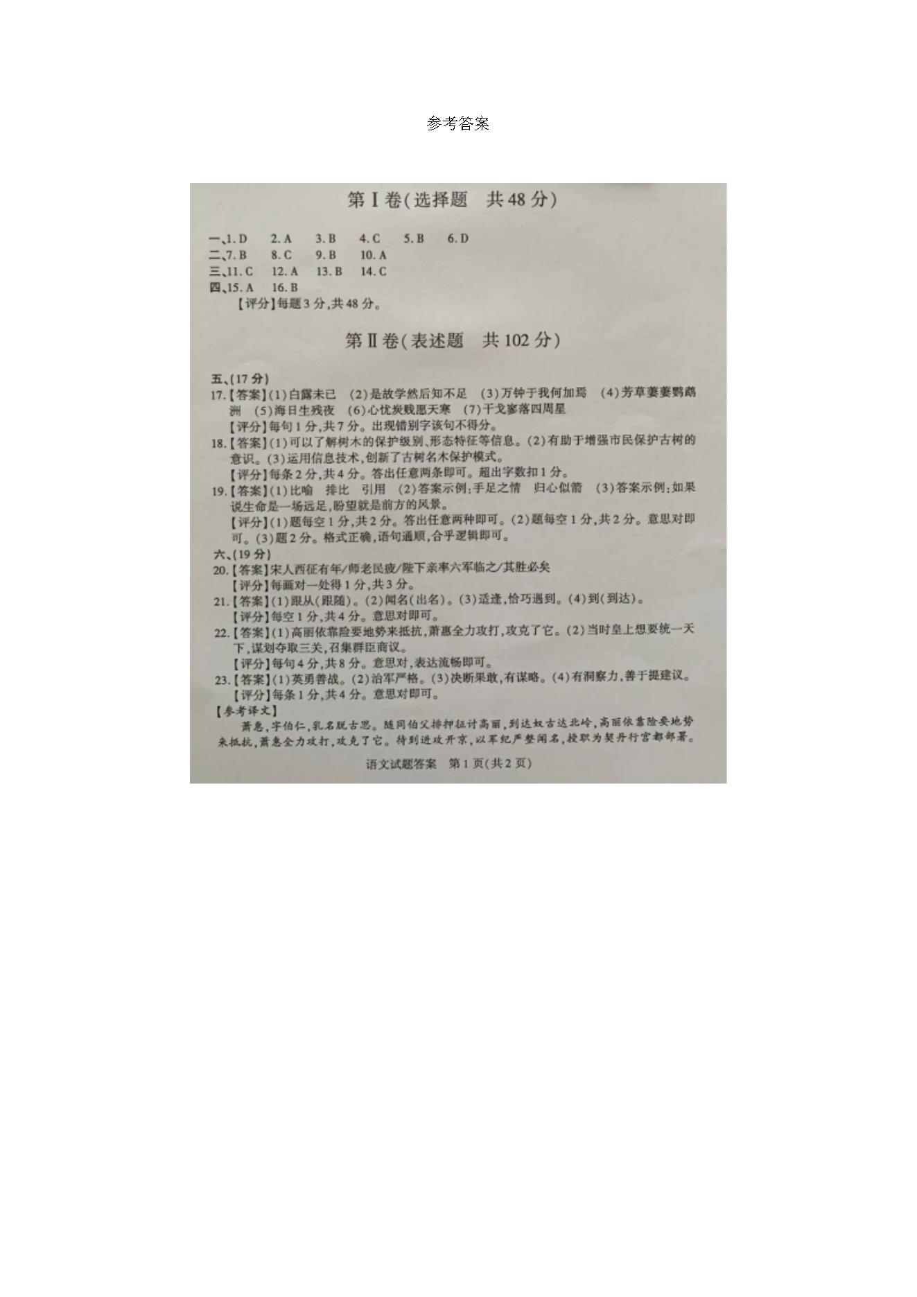【文档预览】 无忧考网整理发布2020年山东泰安中考语文真题及答案(图片版),前五页预览如下: