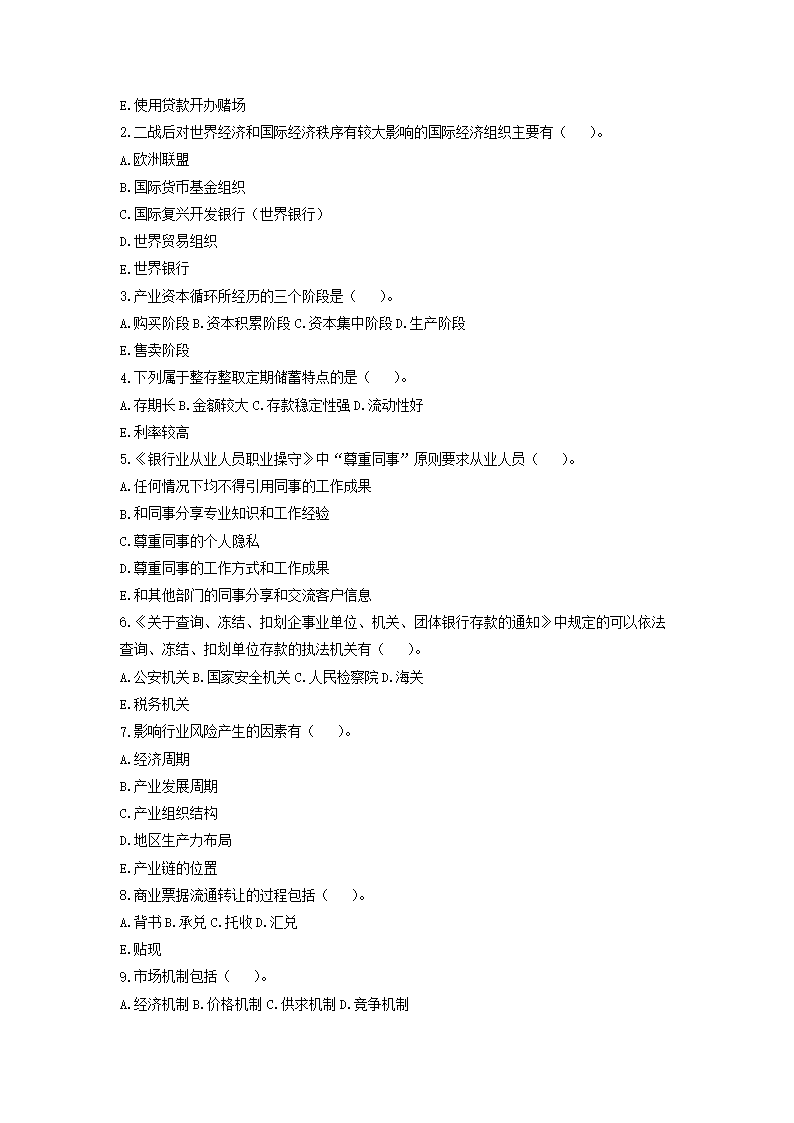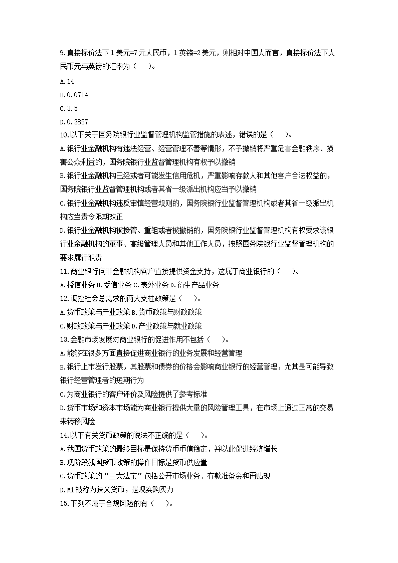【文档名称】 成都银行校园招聘考试笔试题目(Word版).doc