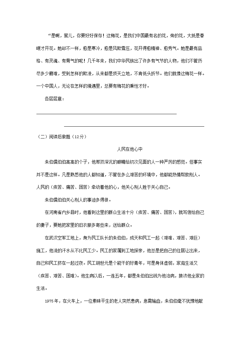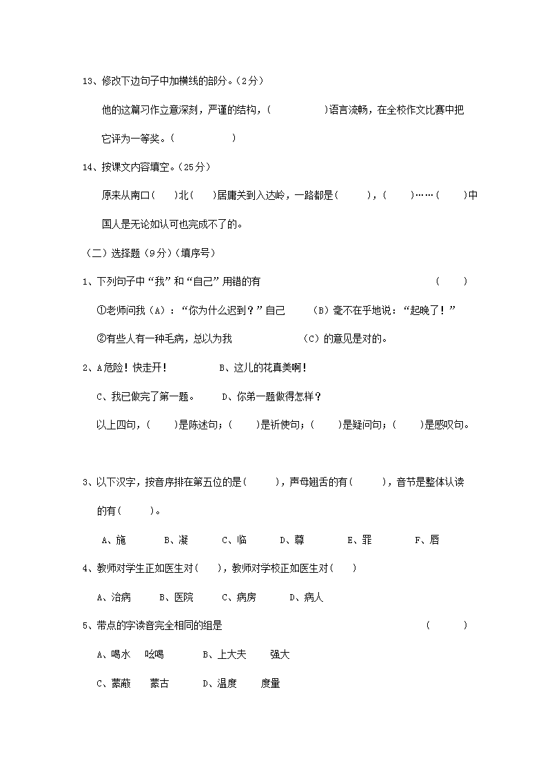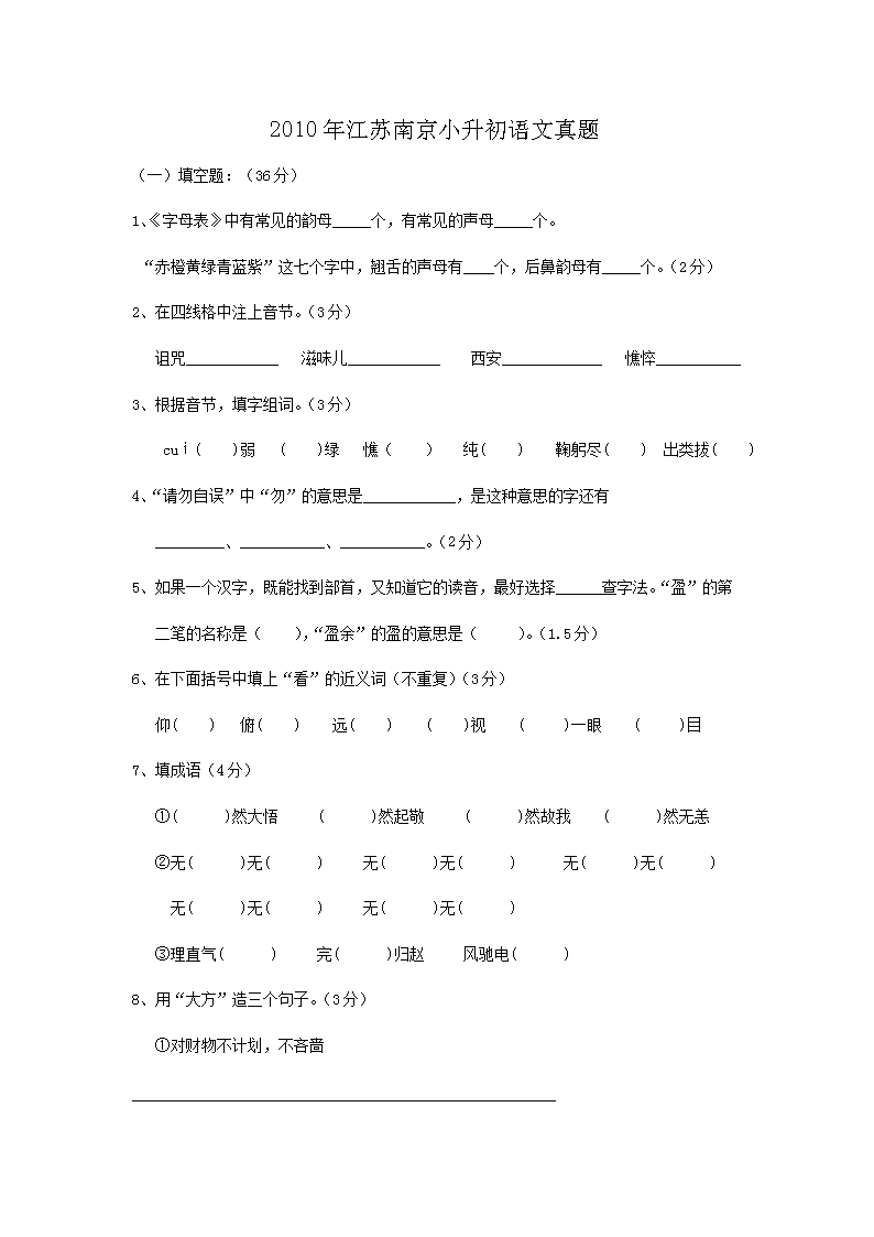 【文档名称】 2010年江苏南京小升初语文真题(Word版).doc