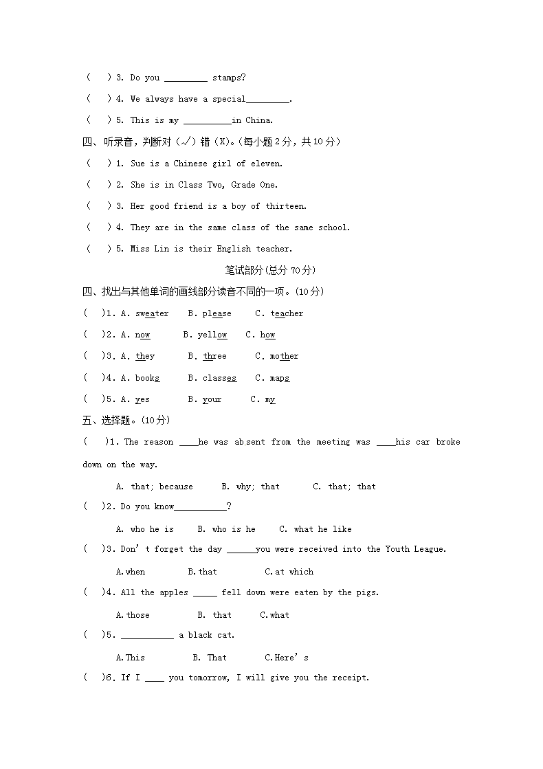 【文档预览】 无忧考网整理发布2019年山东济南小升初英语真题及答案(Word版),前五页预览如下: